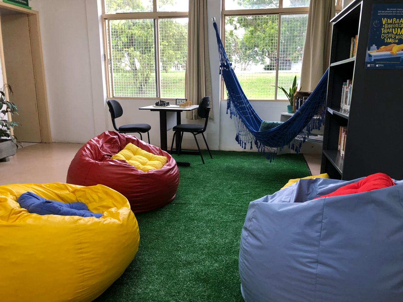Também disponibiliza espaço aconchegante para descanso. Aqui você pode descansar entre suas aulas, fazer uma pausa para um café ou chá nos dias frios ou até mesmo o tão apreciado chimarrão enquanto relaxa sua mente ou lê uma literatura disponível no cantinho.