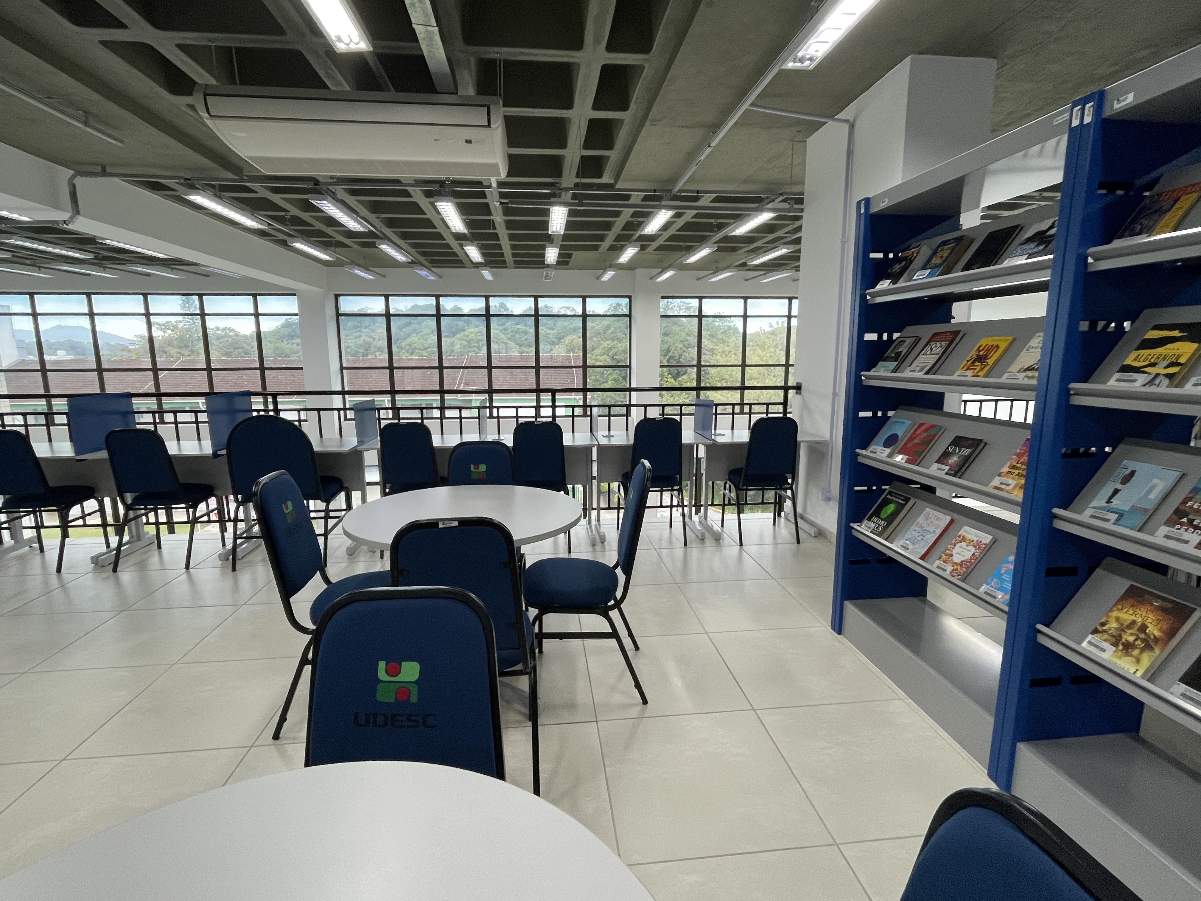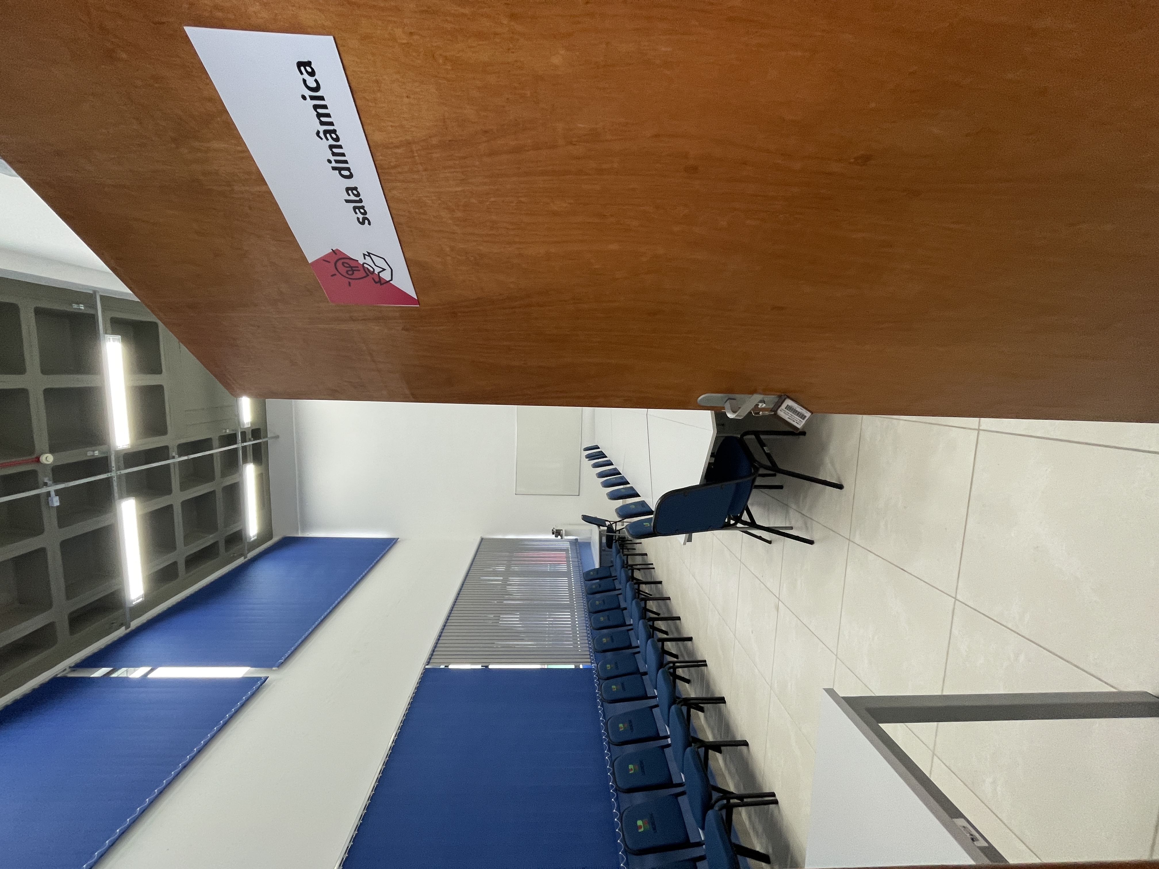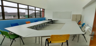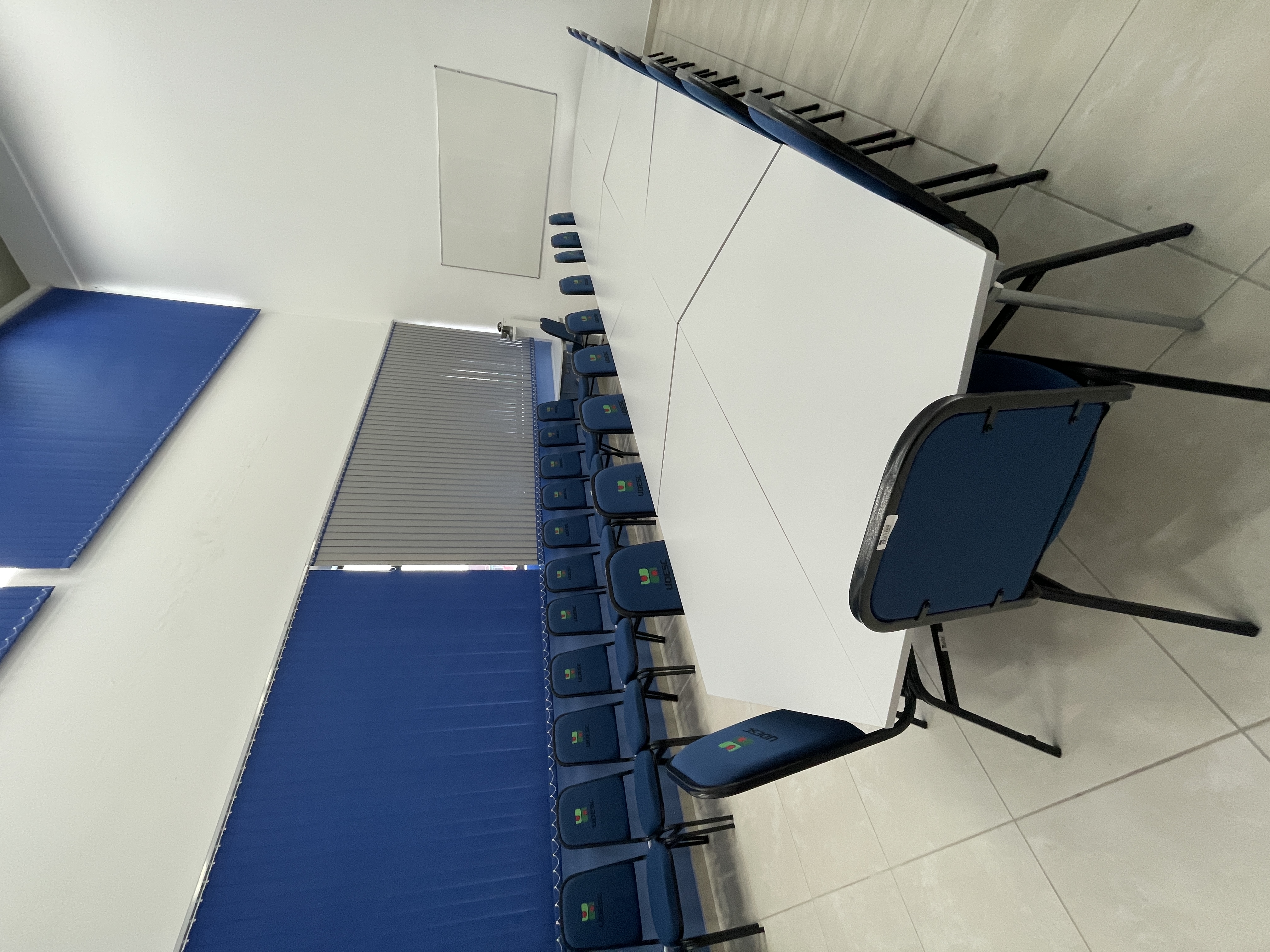 Sala Dinâmica - Agendamento idUDESC (docentes, discentes e servidores). Ambiente para capacitações, aulas dinâmicas, rodas de conversa, reuniões, atividades administrativas, ensino, pesquisa e extensão. Equipamentos: projetor, computador, cadeiras empilháveis e mesas modulares (11 lugares)