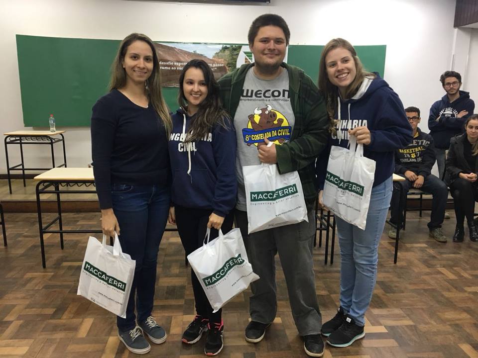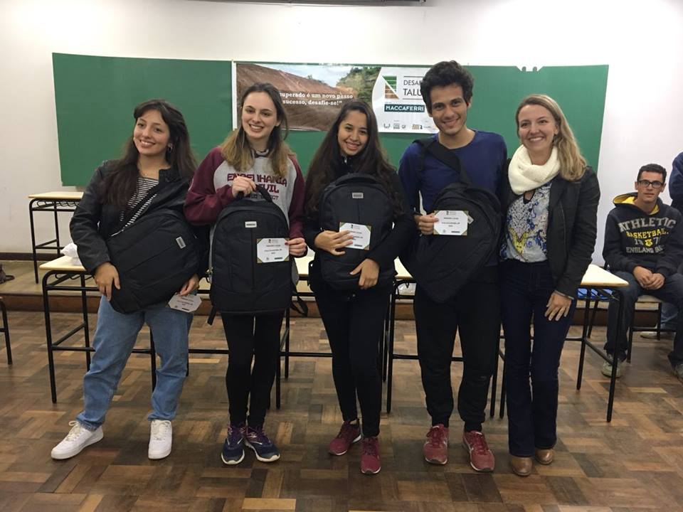 O primeiro lugar foi para a equipe "Trupica + naum cai", composta pelos alunos: César Eduardo Petersen, Isabela de Campos Silva, Jayne Dranka e Luna Adam de França.