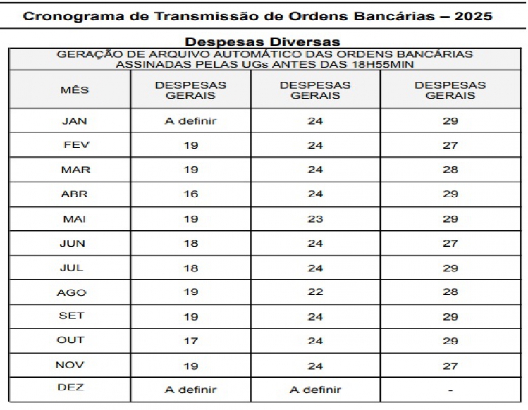O recebimento de processos de pagamento nos meses de novembro e dezembro obedecerá prazos a serem divulgados quando do estabelecimento do calendário de encerramento do exercício por parte da SEF/SC.