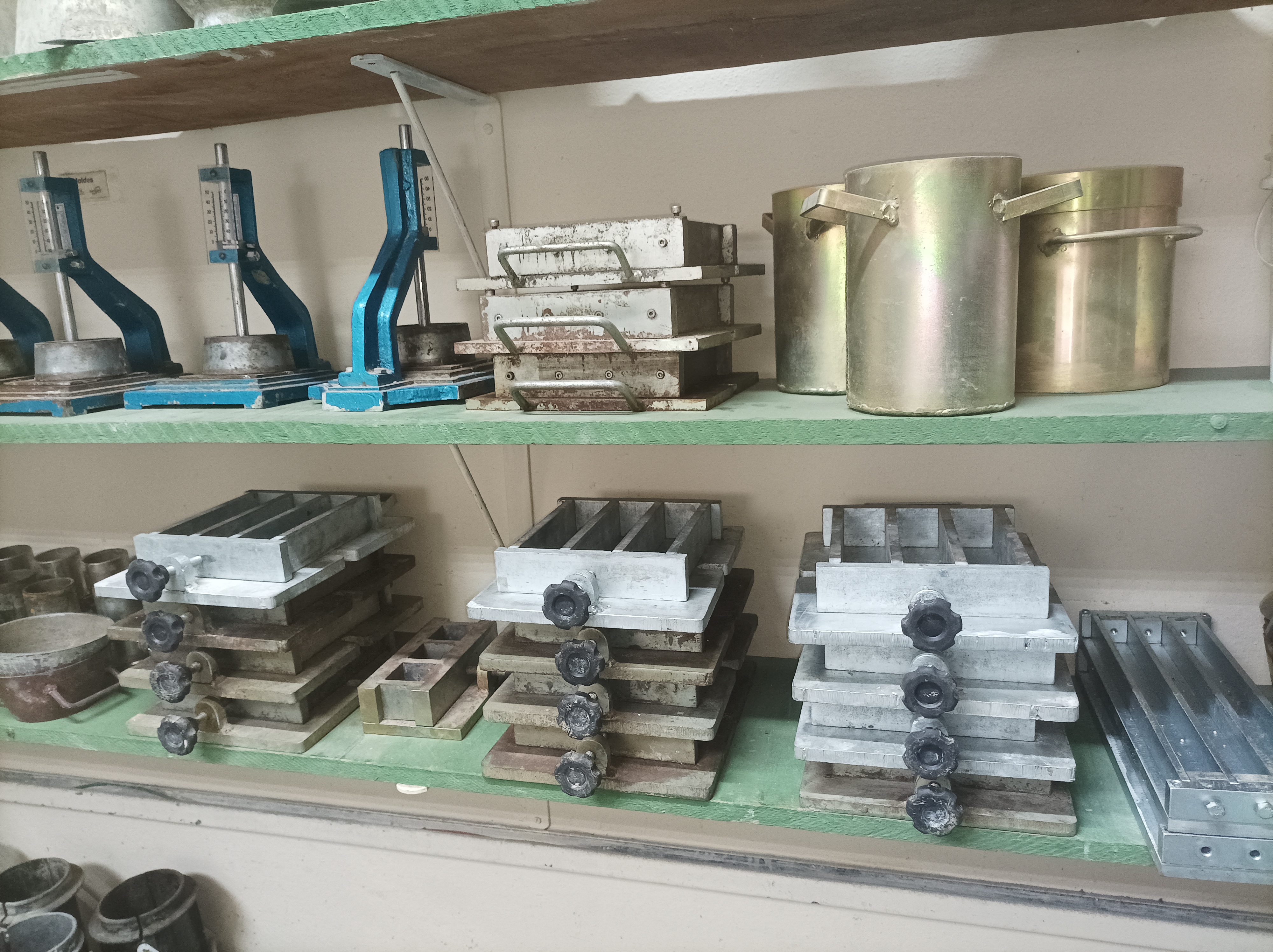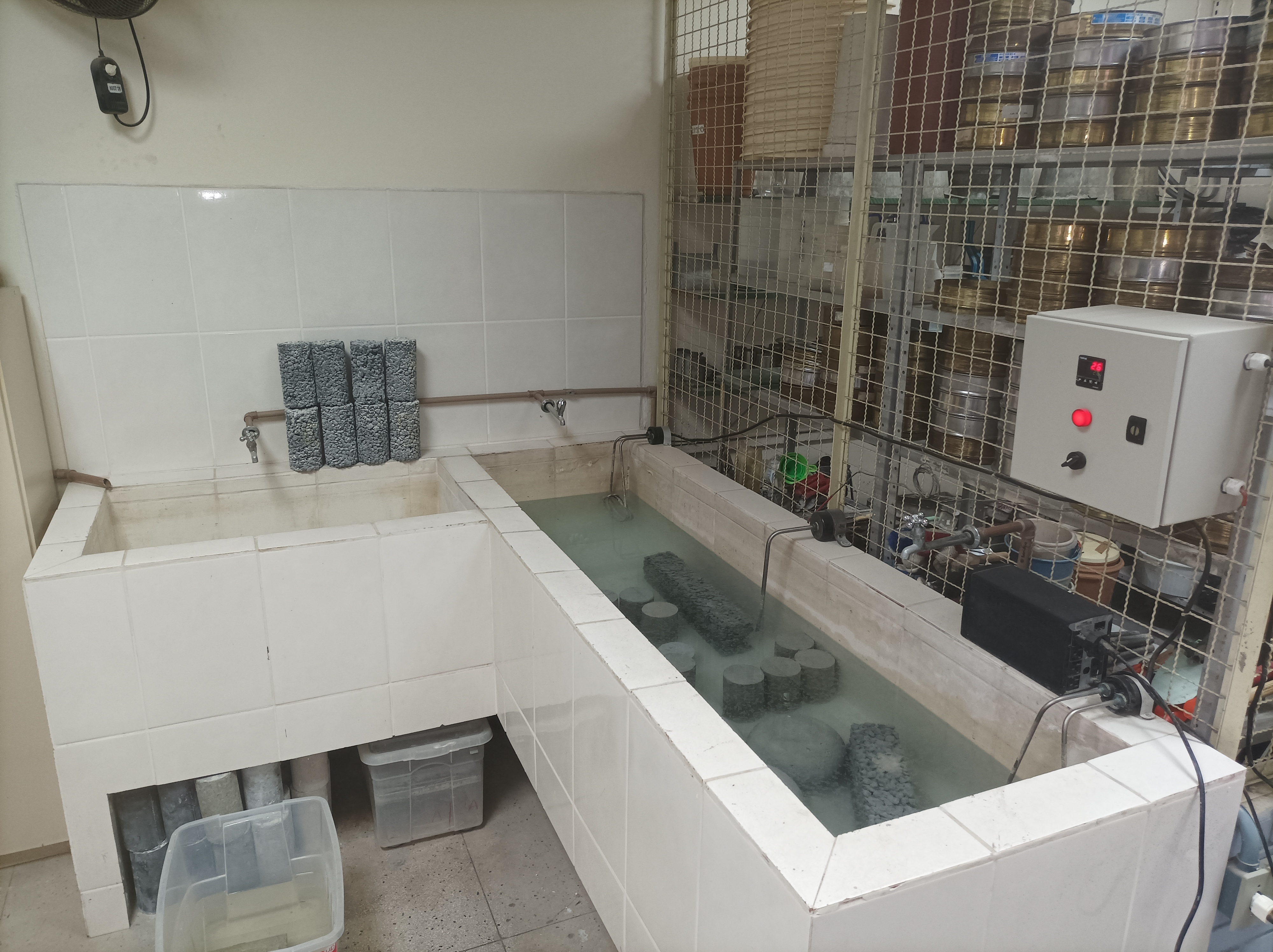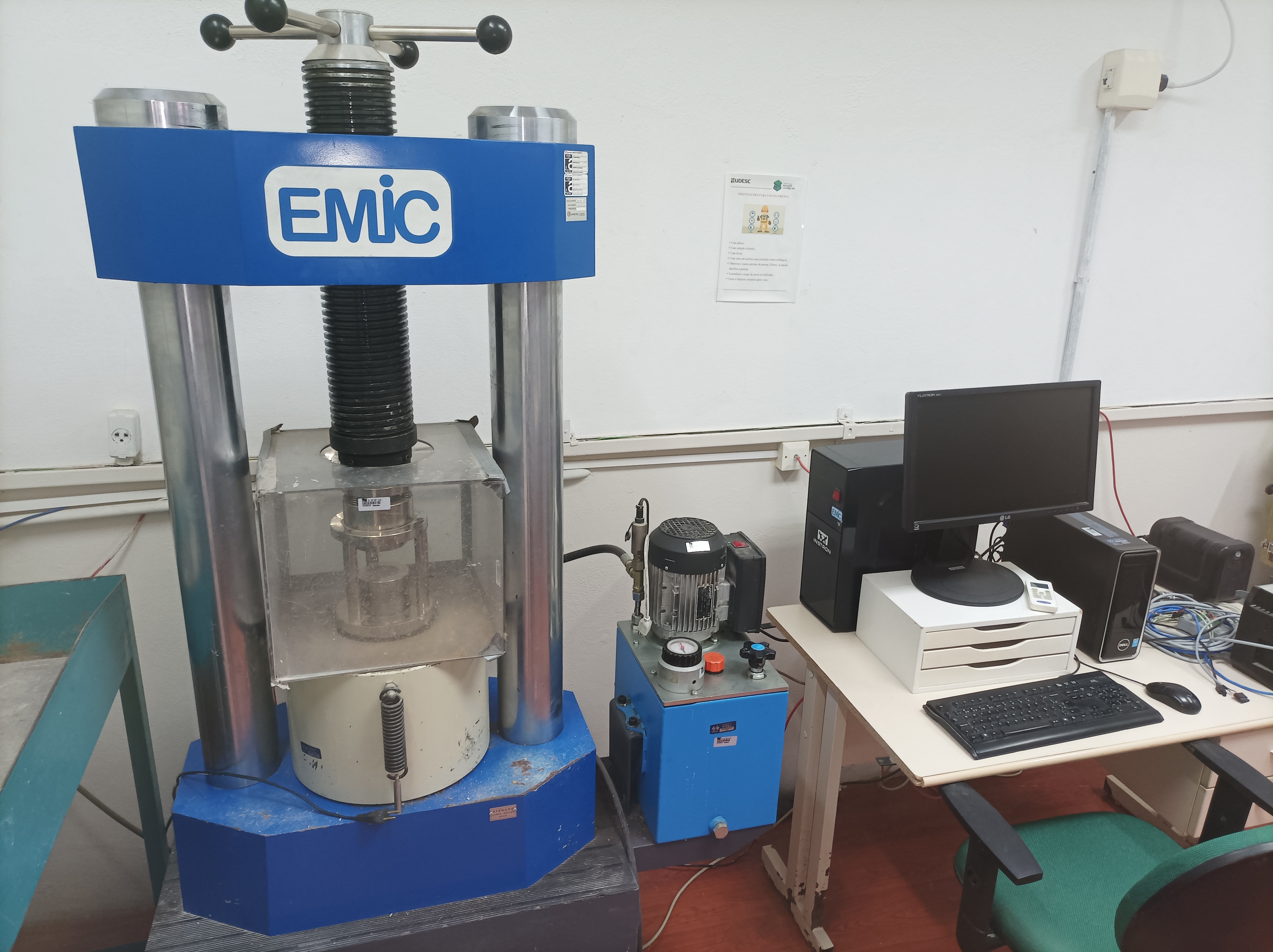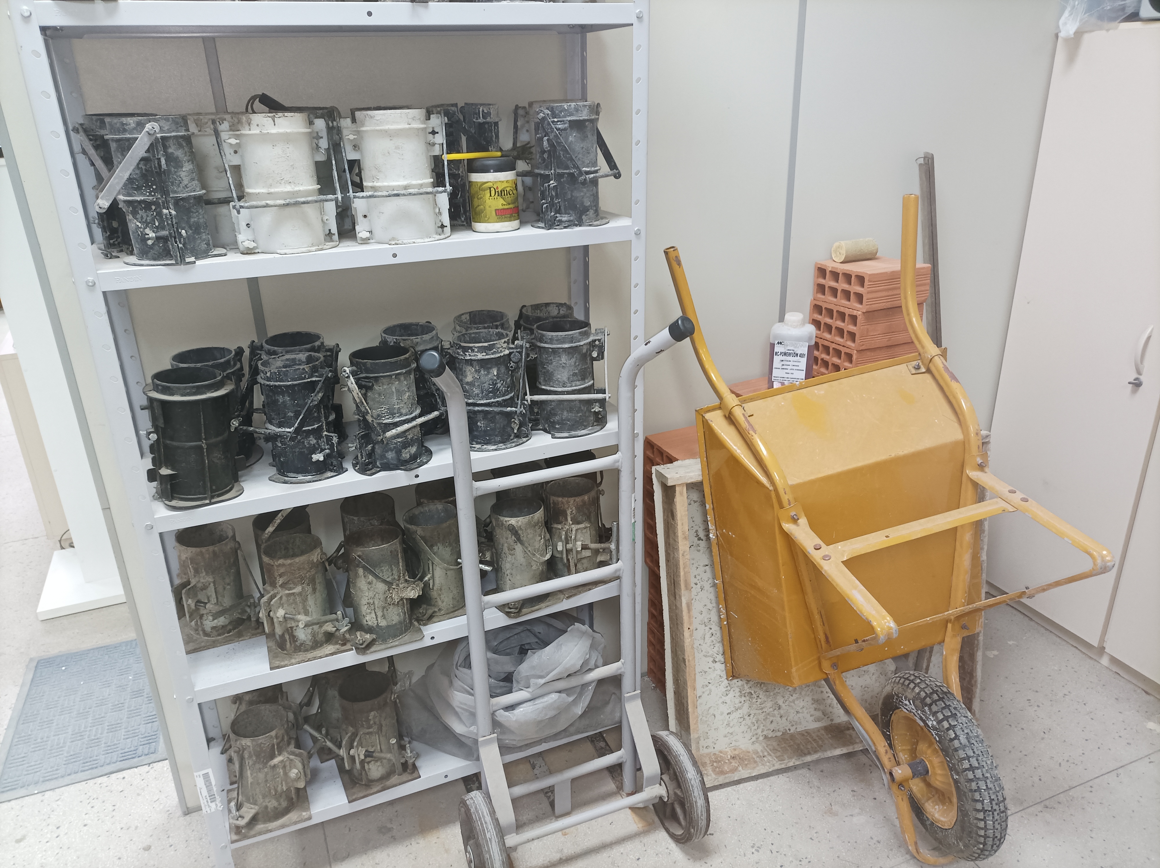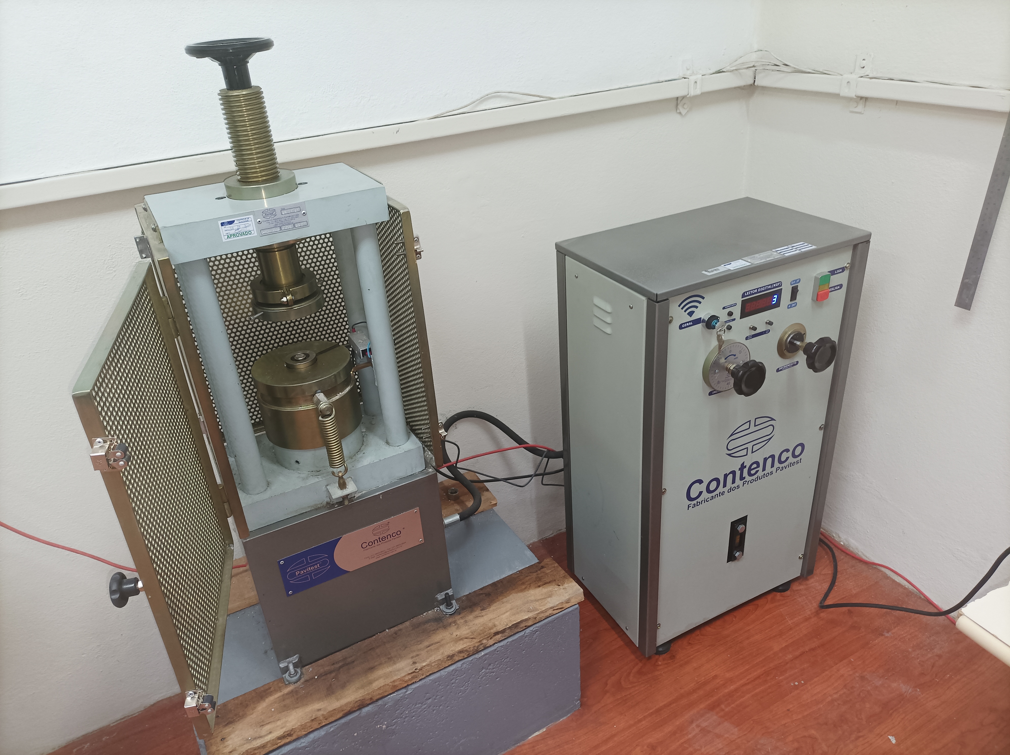 1 Argamassadeira automática para laboratório (misturadora de argamassa) e 2 Argamassadeiras elétricas, capacidade 5 litros; 2 Betoneiras 120 litros; 2 Esclerômetros para Ensaio em Concreto; 1 Prensa Hidráulica Elétrica EMIC 200t; 1 Prensa Hidráulica Elétrica Pavitest Contenco para argamassa 20t; 1 Agitador de peneira; 3 estufas de Esterilização e Secagem; Mesa de medição de consistência manual D 500 mm; 6 Aparelhos de Vicat; 1 Medidor de Ar Incorporado ao Concreto; 4 Balanças Eletrônica de Precisão; 40 Formas cilíndricas para concreto D10 cm X 20 cm 40; 20 Formas cilíndricas para argamassa D5 cm X 10 cm 20; 10 Formas prismáticas triplas para corpo de prova de argamassa 40x40x160mm; 5 Formas prismáticas triplas para retração expansão de argamassa e cimento 25x25x285mm; 1 Acessório para pesagem hidrostática para ensaio de massa específica em balança de capacidade 5kg; 1 mesa de adensamento por queda elétrica para moldagem de corpos de prova de argamassa; 1 mesa vibratória elétrica;1 Aparelho para medição de retração/expansão de argamassa com relógio comparador de precisão; 1 aparelho para teste de arrancamento (aderência) de argamassa; 1 Aparelho para medição de retenção de água em argamassa; Conjunto slump test para concreto auto adensável; 1 moinho digital; 1 retificadora de corpos de prova; 1 Cooktop de indução 4 bocas; 1 Tanque de cura com temperatura controlada; 1 Calorímetro; jogos de peneira; moldes prismáticos e cilíndricos; mesa Flow Table; 1 Fechadura biométrica; 1 condutivímetro para medição de condutividade térmica marca Sensu, modelo K10N; e Equipamento PMX de aquisição de dados, marca HBM. O sistema de aquisição de dados inclui uma célula de carga de 1MN, o equipamento de aquisição de dados PMX, o software CATMAN-EASY e outros acessórios. 1 estufa de secagem digital; 1 retificadora horizontal manual; 1 forno mufla microprocessado digital; 4 Computadores completos.