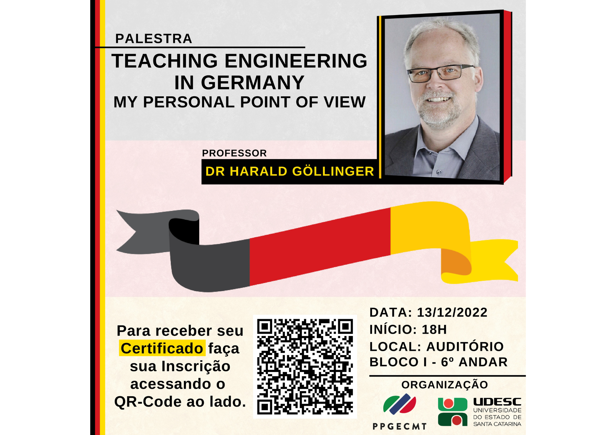 Palestra "TEACHING ENGINEERING IN GERMANY: My personal point of view" com o palestrante: Prof. Dr. Harald Göllinger