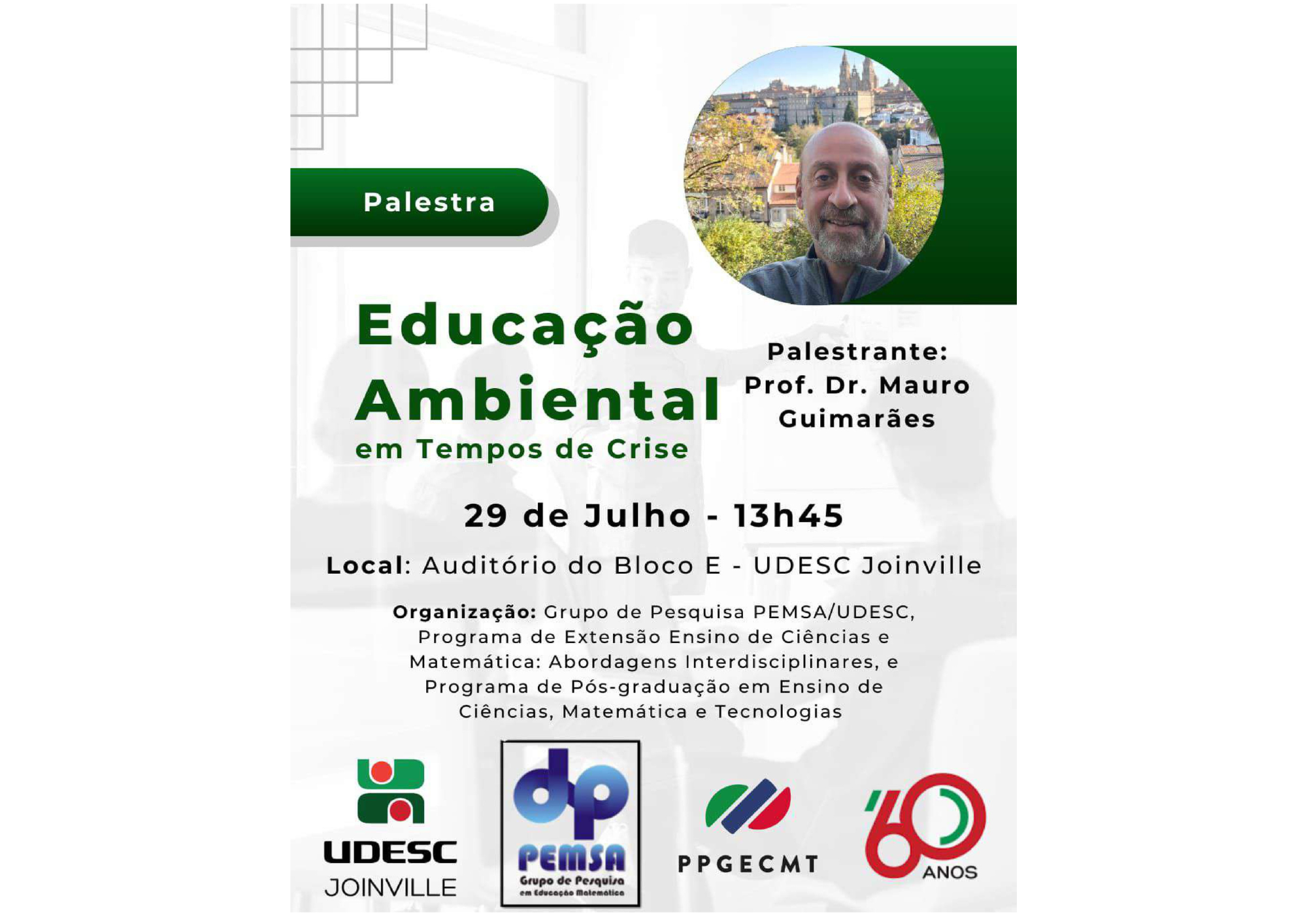Palestra "EDUCAÇÃO AMBIENTAL: em tempos de crise" com o palestrante: Prof. Dr. Mauro Guimarães