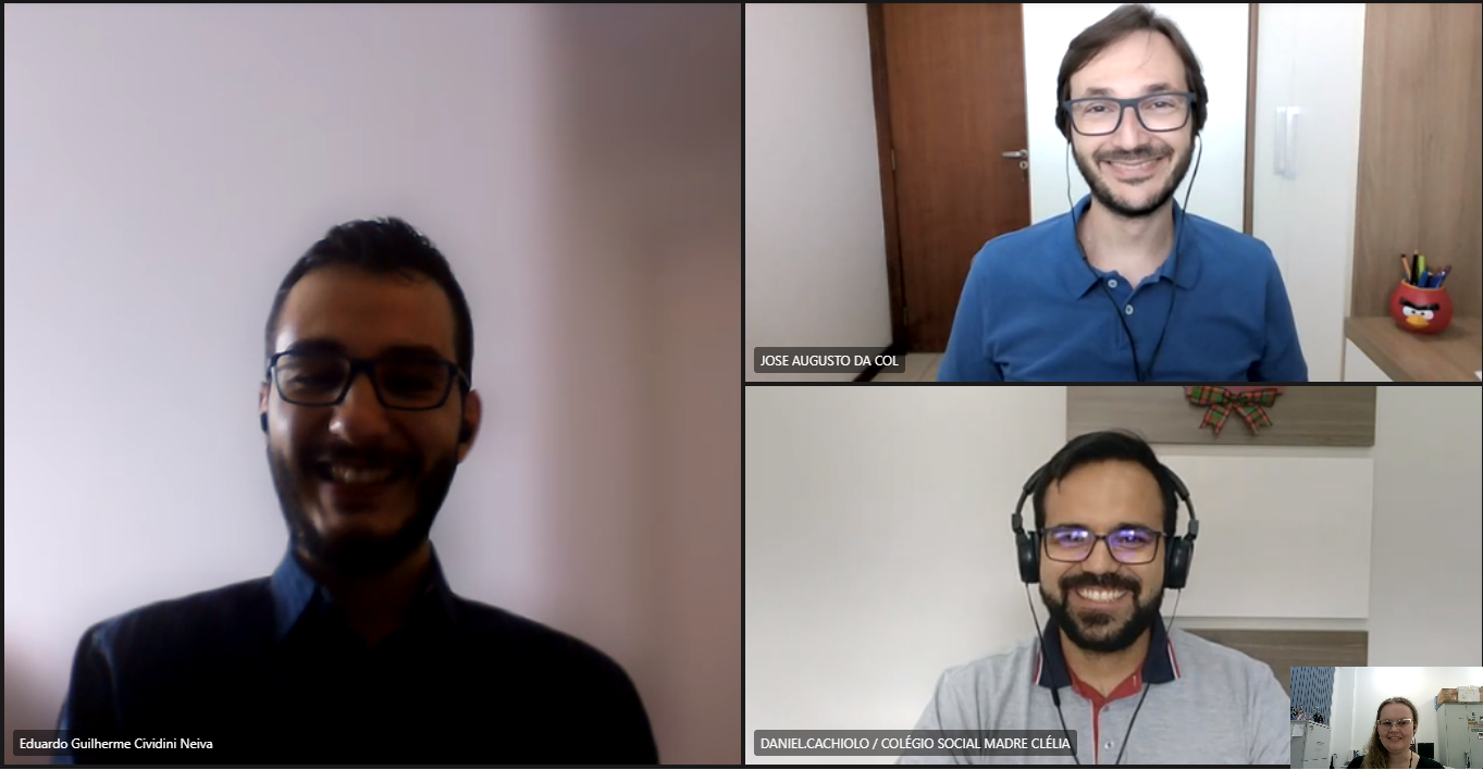 15/12/2020 - Defesa de mestrado do aluno Daniel de Souza Cachiolo (mestrando e membros da banca em sala virtual)