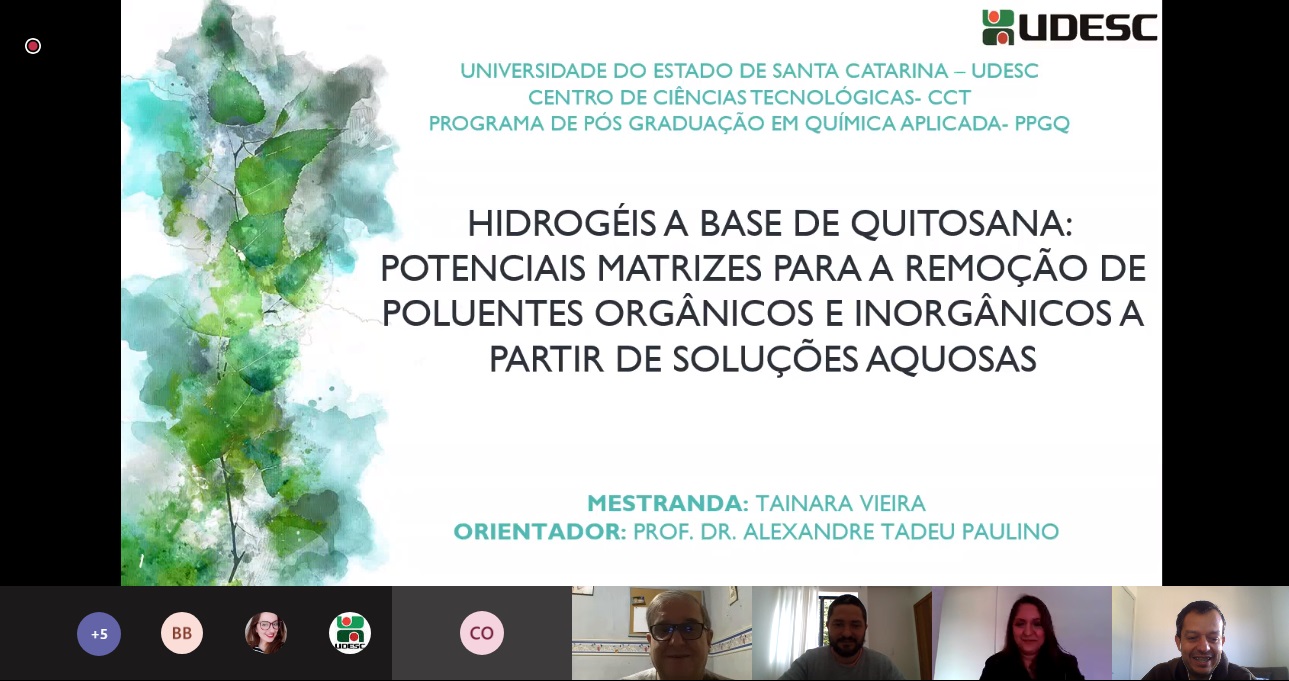 20/05/2020 - Primeira defesa de mestrado do PPGQ em ambiente virtual (aluna Nadine Inácio e membros da banca)