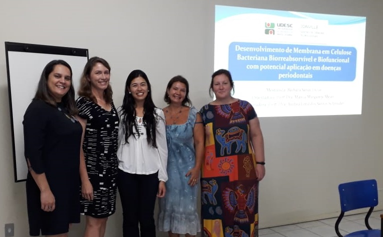 04/07/2018 - Mestranda e orientador com membros da banca: Profa. Rosely Peralta (UFSC) e Prof. Samuel Mendes (UDESC)