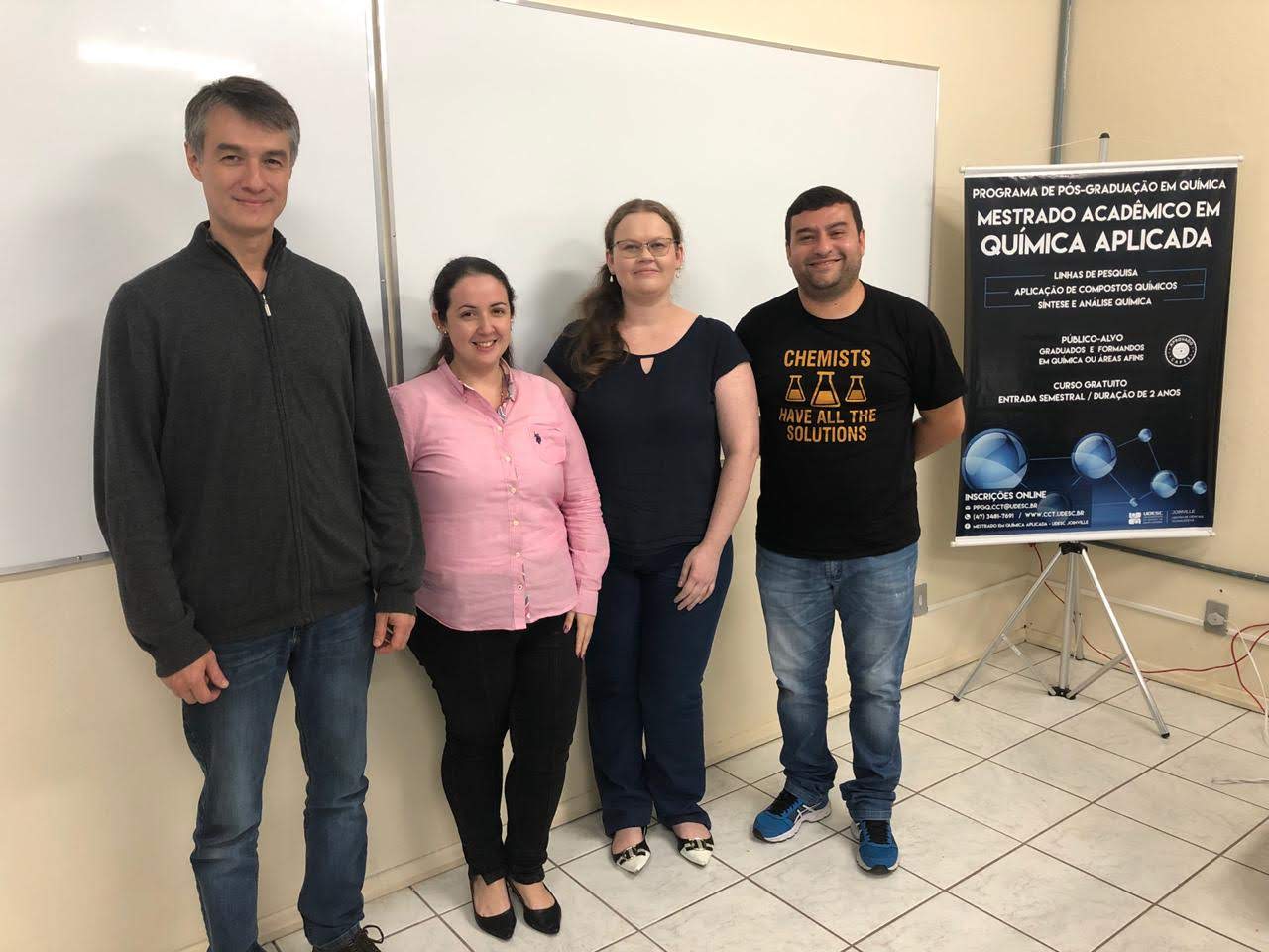28/05/2018 - Professores da Pós-graduação em Bioquímica e Biologia Molecular do CAV (UDESC-Lages) em visita ao PPGQ: Amanda Leite Pereira, Carla Ivane Vogel e Luiz Claudio Miletti