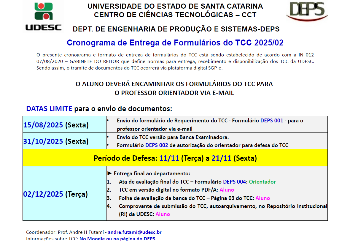 Coordenação: André Hideto Futami Contato: andre.futami@udesc.br