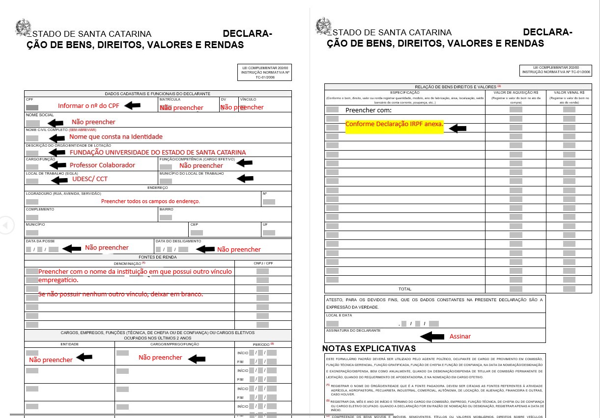 18. Declaração de Bens, Direitos, Valores e Rendas (Formulário MLR 019) - Preencher conforme modelo - CLIQUE AQUI