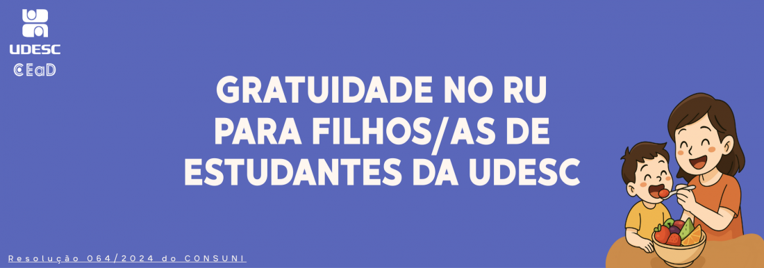 A UDESC, através da Resolução 064/2024 do CONSUNI, estabeleceu o direito à alimentação gratuita no Restaurante Universitário para filhos(as) de estudantes regularmente matriculados. Esta medida visa apoiar a permanência estudantil e promover condições mais igualitárias de acesso à educação superior.