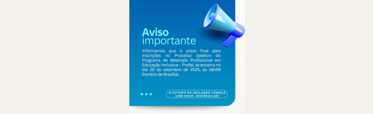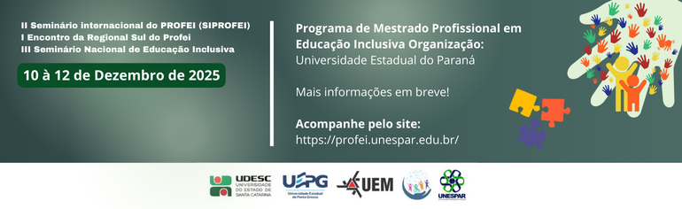 O Mestrado Profissional em Educação Inclusiva em Rede (PROFEI) da Udesc está com o processo seletivo aberto para a turma de 2026, com 29 vagas disponíveis.