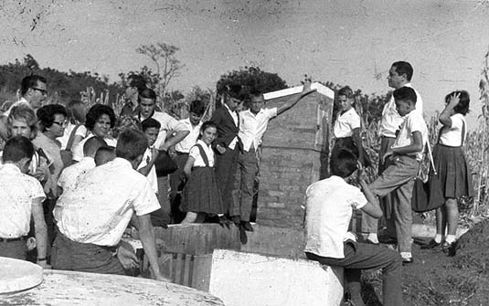 Estudo do meio no cemitério da cidade de Americana (1964). Alunos (as) do Ginásio Estadual Vocacional João XXIII, da cidade de Americana
