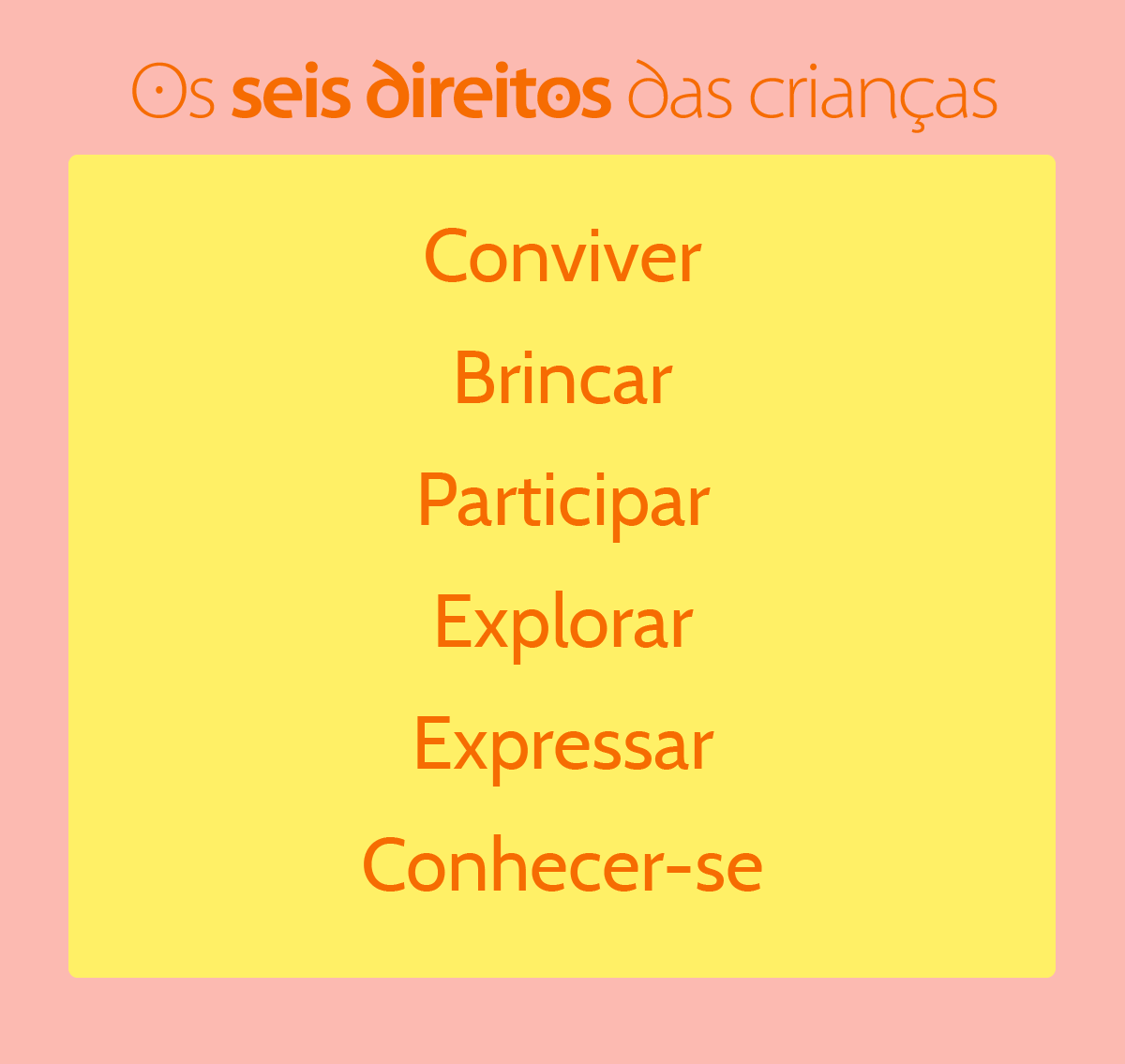Os campos de experiência se articulam com direitos de aprendizagem e desenvolvimento, quais sejam: o direito de conviver; de brincar, de participar, de explorar, de expressar e de conhecer-se.