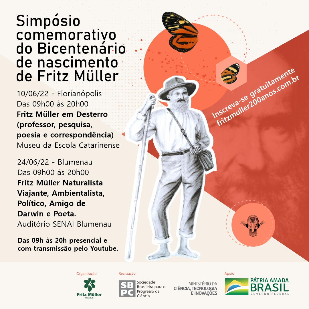 E particularmente, acompanhar, de forma presencial ou pelo youtube, o Simpósio Comemorativo do Bicentenário de nascimento de Fritz Müller, que ocorrerá em Florianópolis no dia 10 de junho e em Blumenau no dia 24 de junho.