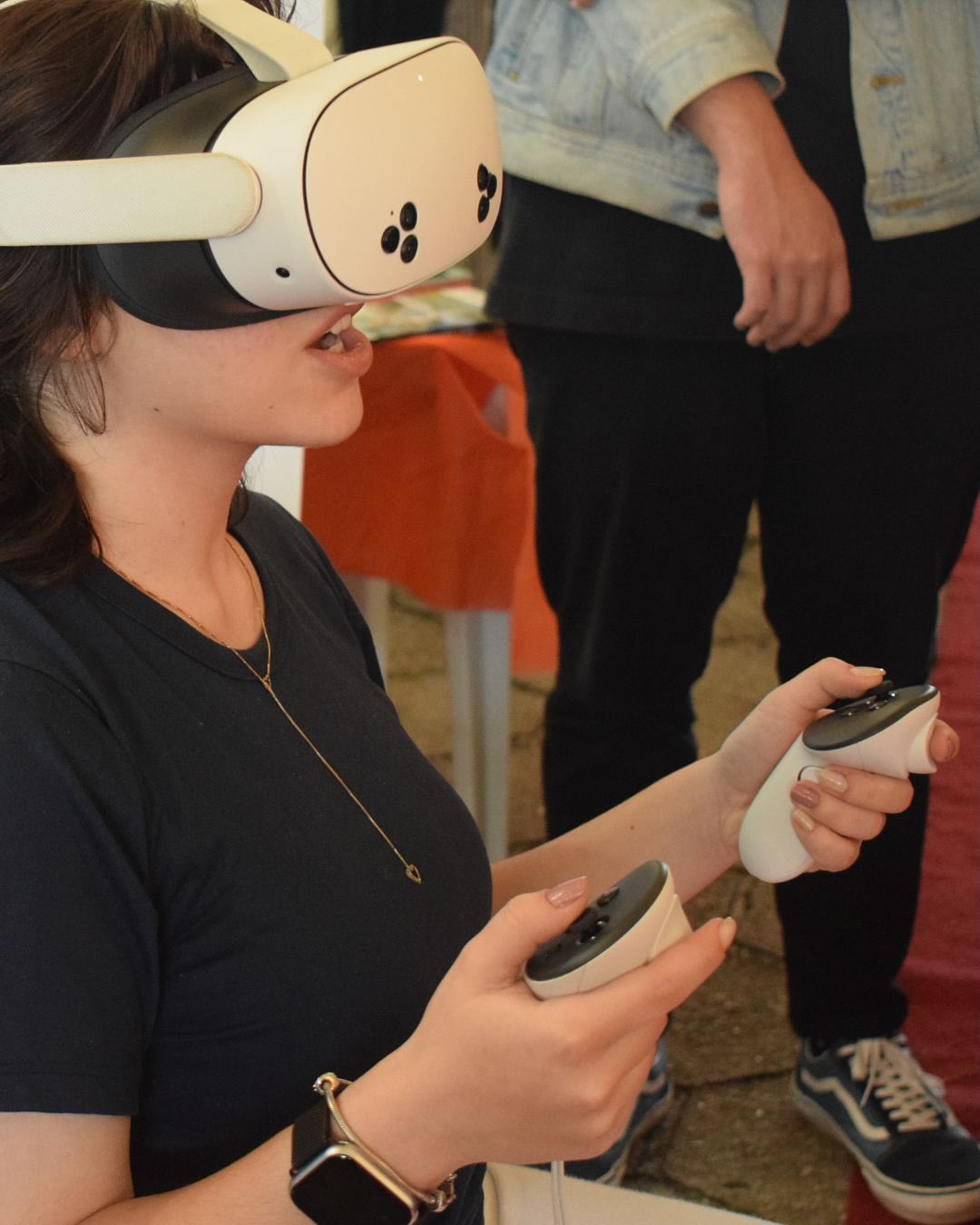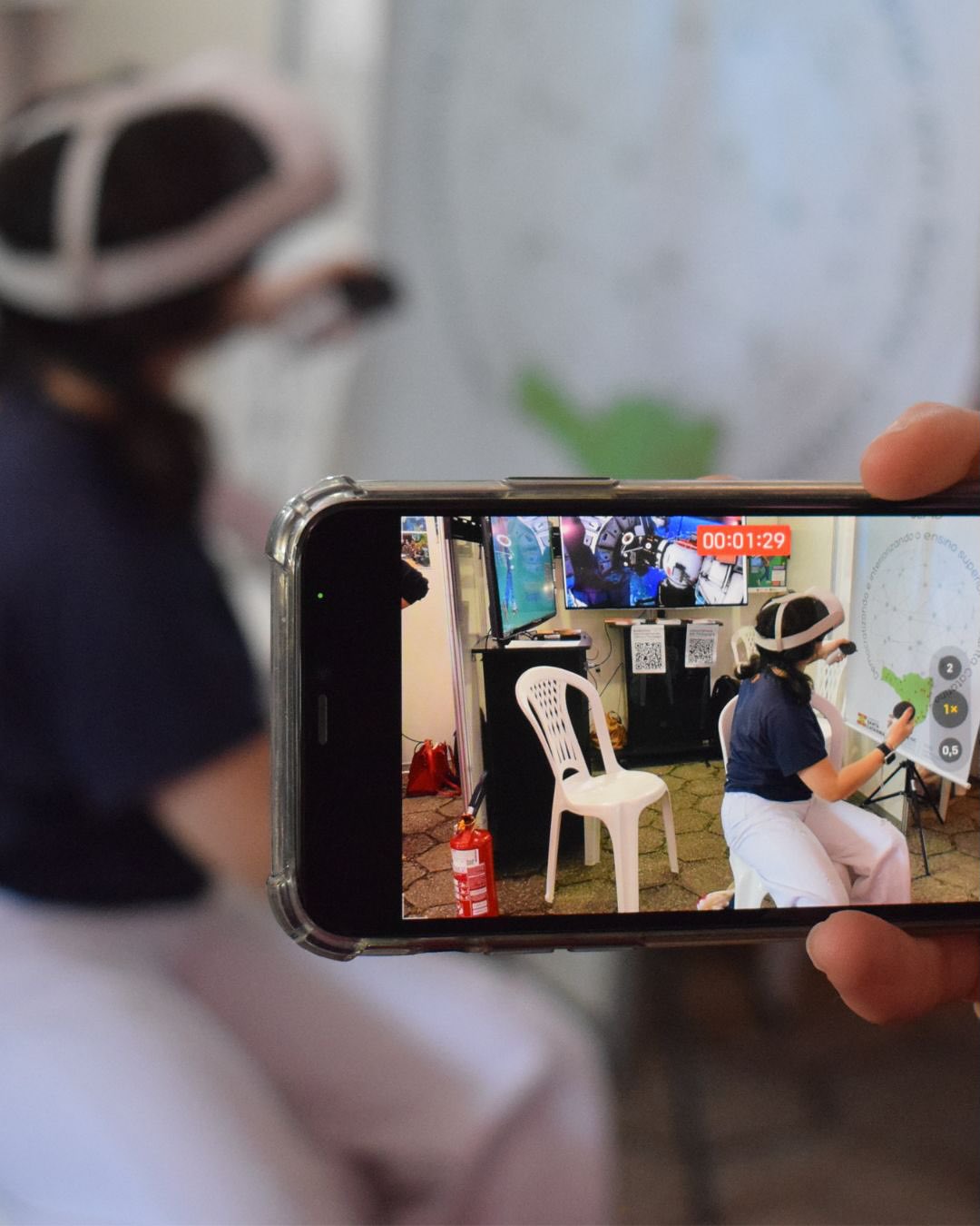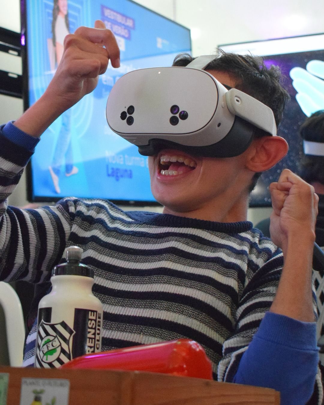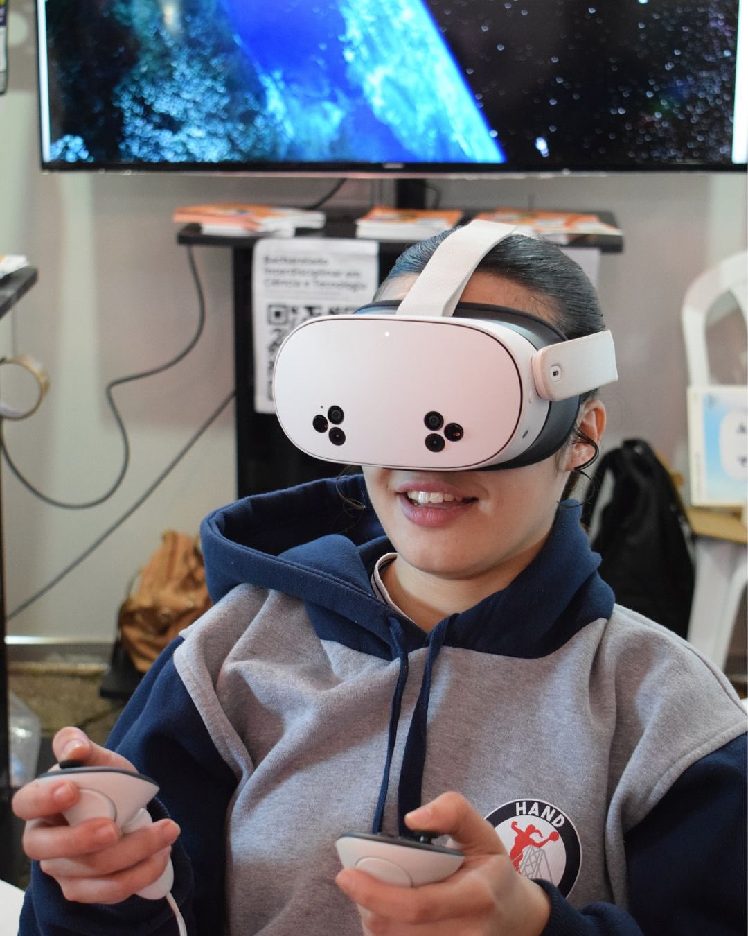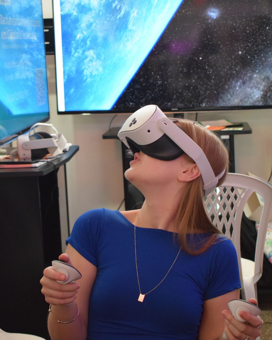 A Udesc Cead marcou presença com um estande no evento do Parque das Profissões em 10 e 11 de setembro, na sede do Campus I, no Bairro Itacorubi, em Florianópolis. A equipe da Udesc Cead destacou os dois cursos de graduação do centro de ensino com vagas pelo Vestibular de Verão 2026: Bacharelado Interdisciplinar em Ciência e Tecnologia (em Florianópolis e Laguna) e Licenciatura em Pedagogia (em Itapema e Laguna). Uma novidade no estande foi o uso de óculos de realidade virtual na recepção aos visitantes, com o objetivo de proporcionar uma experiência inicial com a ferramenta tecnológica aos interessados. Foram usados dois aplicativos: uma simulação de visita à estação espacial e um roteiro guiado pela cidade de Veneza. A iniciativa foi viabilizada com suporte da Coordenadoria de Informática e da Assessoria de Comunicação, sob coordenação da Direção de Ensino de Graduação.