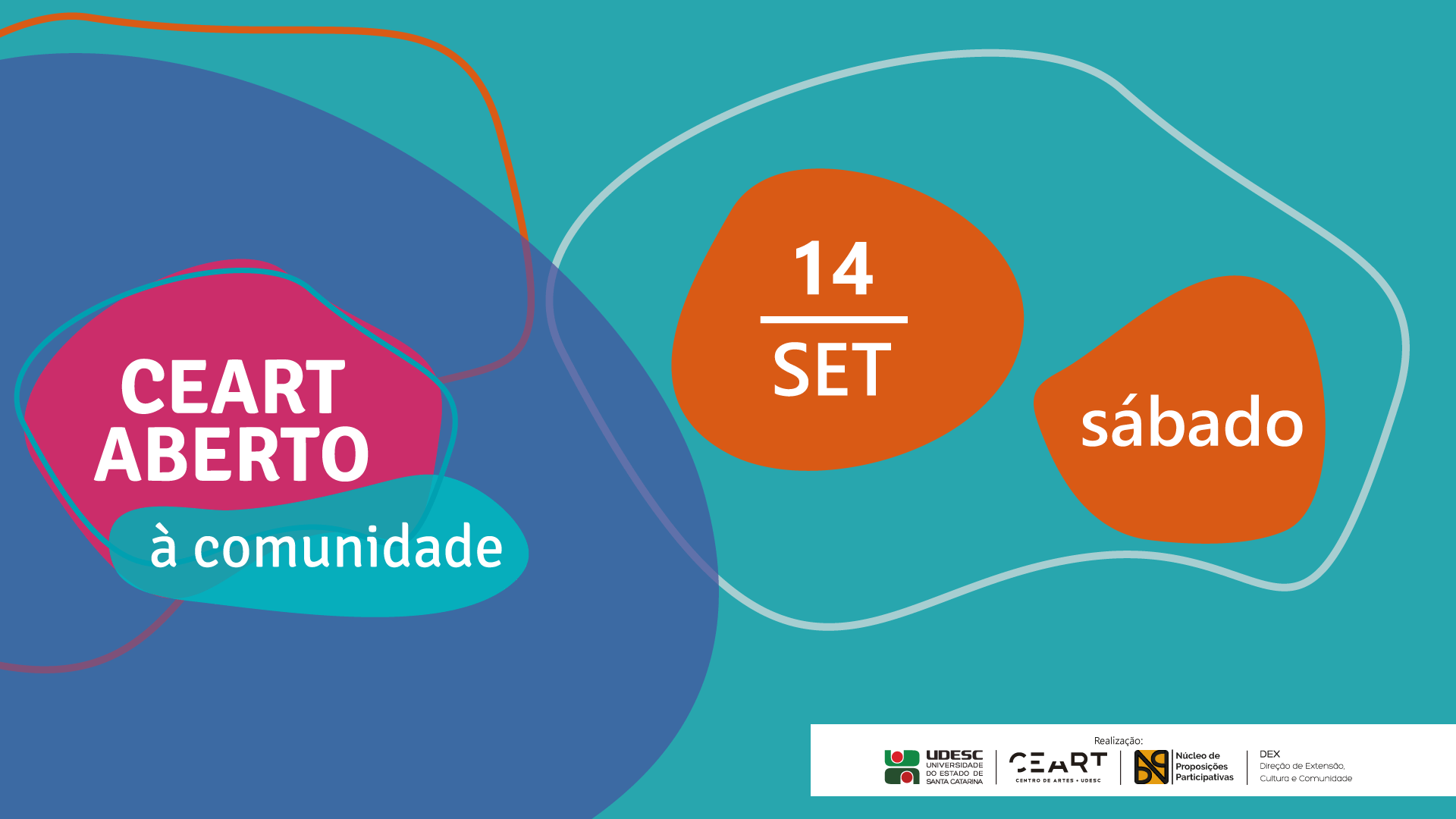 Data: 14/09/2019 (sábado) Horário: 12h às 20h Local: Centro de Artes da Udesc Sinopse: O projeto conta com diversas atividades artísticas e culturais gratuitas para adultos e crianças, entre apresentações artísticas, oficinas, exposições e feiras de gastronomia, produtos orgânicos, arte, moda e artesanato. A proposta é oferecer à comunidade catarinense ações de formação e difusão artística e cultural, por meio de atividades desenvolvidas pelos cinco departamentos da Udesc Ceart - Artes Cênicas, Artes Visuais, Design, Moda e Música -, nas áreas do ensino, pesquisa, extensão; além atividades propostas pela comunidade externa, atividades convidadas e disponibilização de salas para estudos. Público-alvo: Aberto à comunidade