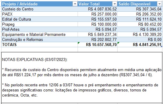 Link com acesso aos saldos do CEART apurados em 03/07/2023. Clique aqui.
