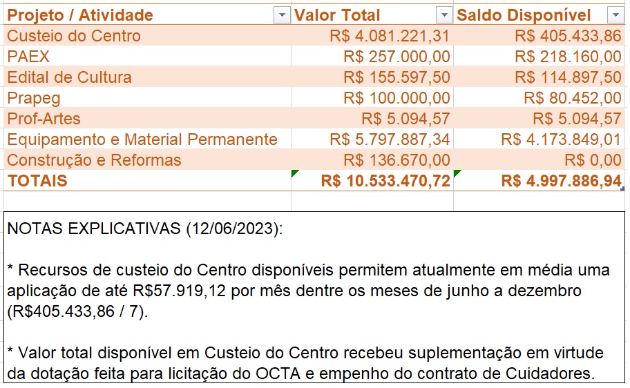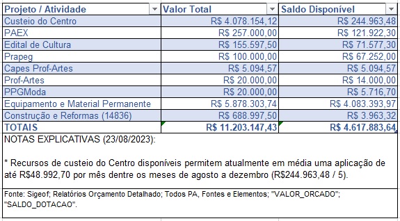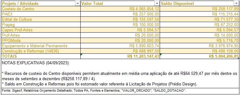 Link com acesso aos saldos do CEART apurados em 04/09/2023. Clique aqui.