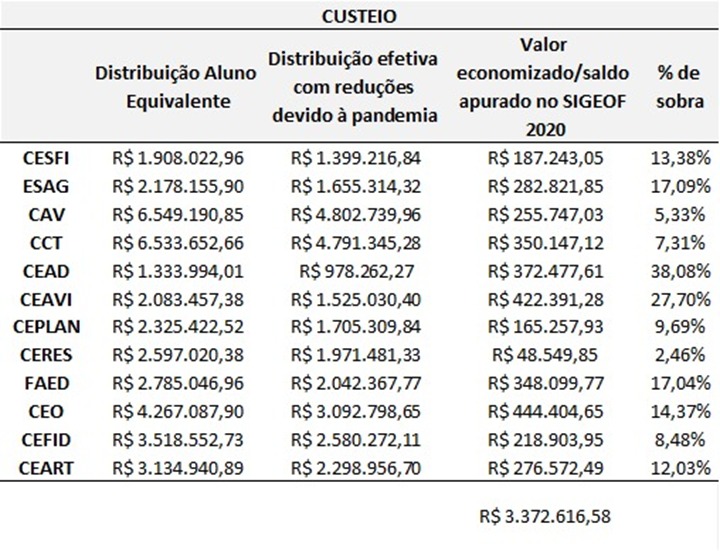 Clique aqui para acompanhar a distribuição de orçamento do Ceart e dos demais Centros da Udesc.