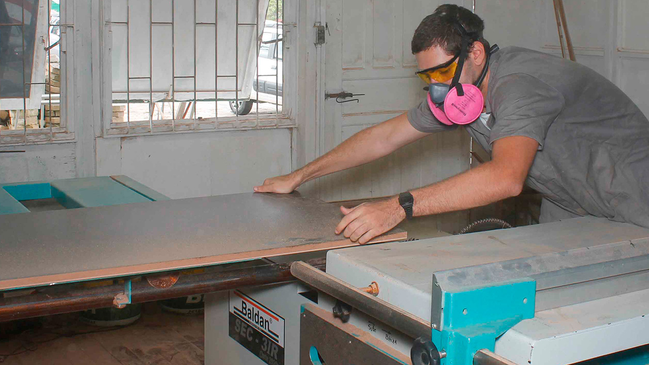 A Oficina de Marcenaria, por sua vez, possui bancadas, bem como equipamentos manuais para o corte e acabamento da madeira.
