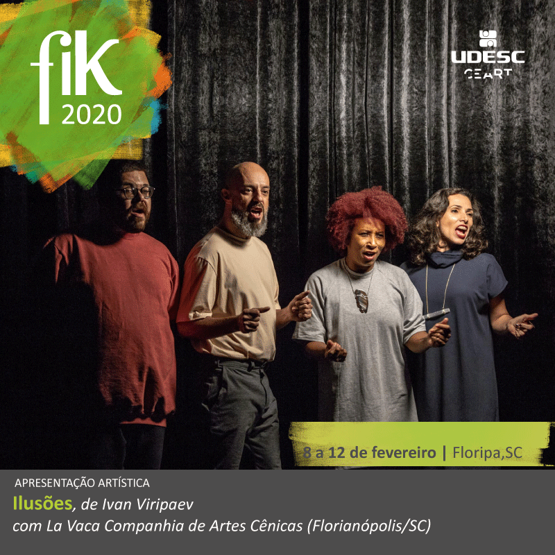 Sinopse: A Montagem de 2019 do curso de Teatro da UDESC traz em cena desta vez, o universo de Eugene Ionesco, escritor e dramaturgo francês (1909 – 1994). “A Cantora Careca” é uma obra pertencente à corrente batizada de Teatro do Absurdo, e se caracteriza por sua linguagem verbal “non sense” e sua veia irônica, levando os personagens a diálogos absurdos que impossibilitam a comunicação entre os mesmos.