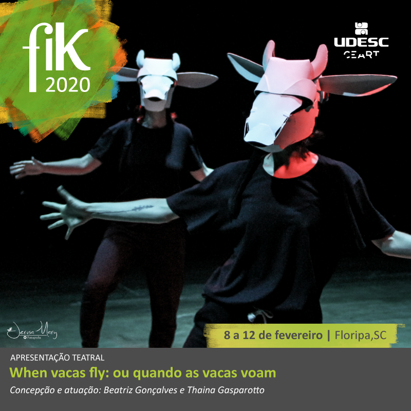 Sinopse: Muitos fios, duas cabeças, quatro cabeças, quatro braços, oito pernas, nenhum rabo. O espetáculo teatral "When vacas fly: ou quando as vacas voam" parte de diferentes inquietações que atravessam o cotidiano. Diante da impossibilidade de chegar em um fim quando se trata do ato de questionar, este trabalho é um amontoado de perguntas que não têm pretensão de serem respondidas. Duas vacas com cabeças de atrizes: um compartilhamento de questões, que geram novas questões. Curiosidades colocadas no corpo, que dançam as dúvidas sobre si, sobre o outro e sobre o hoje.