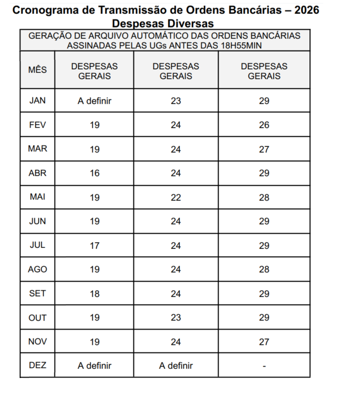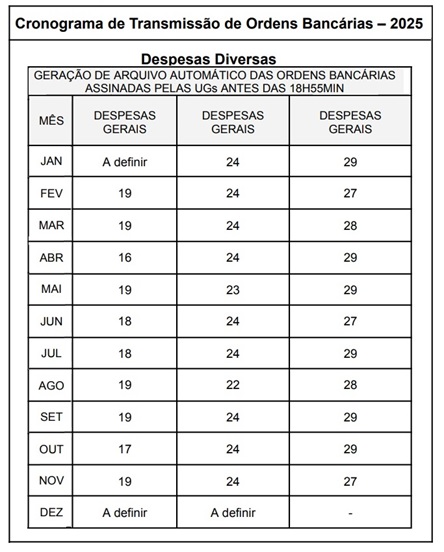 Cronograma de Pagamentos divulgado pela SEF/SC, para o ano de 2025.