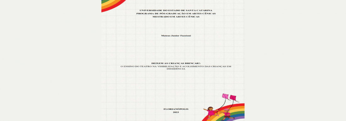 O estudo investiga as infâncias das crianças em dissidência, suas brincadeiras proibidas e vivências com Teatro na Educação a partir de lembranças da infância do autor e de outros (as) professores (as) de teatro LGBTQIAPN+. O objetivo do estudo é problematizar as construções sociais de gênero e sexualidade na infância; a designação compulsória do sistema sexo-gênero; a (in) visibilidade e o apagamento das crianças em dissidência; o brincar como como ação social das crianças nas culturas de pares e as brincadeiras proibidas como patrimonios queer das infâncias dissidentes. Desse modo, investiga-se o Drama, como uma abordagem metodológica que possibilita tanto o ensino e a experimentação do teatro, quanto a instauração de espaços potenciais de escuta e acolhimento das crianças em dissidência na escola, assim como, de discussões de temáticas queer que tencionem padrões e estereótipos ligados às brincadeiras.