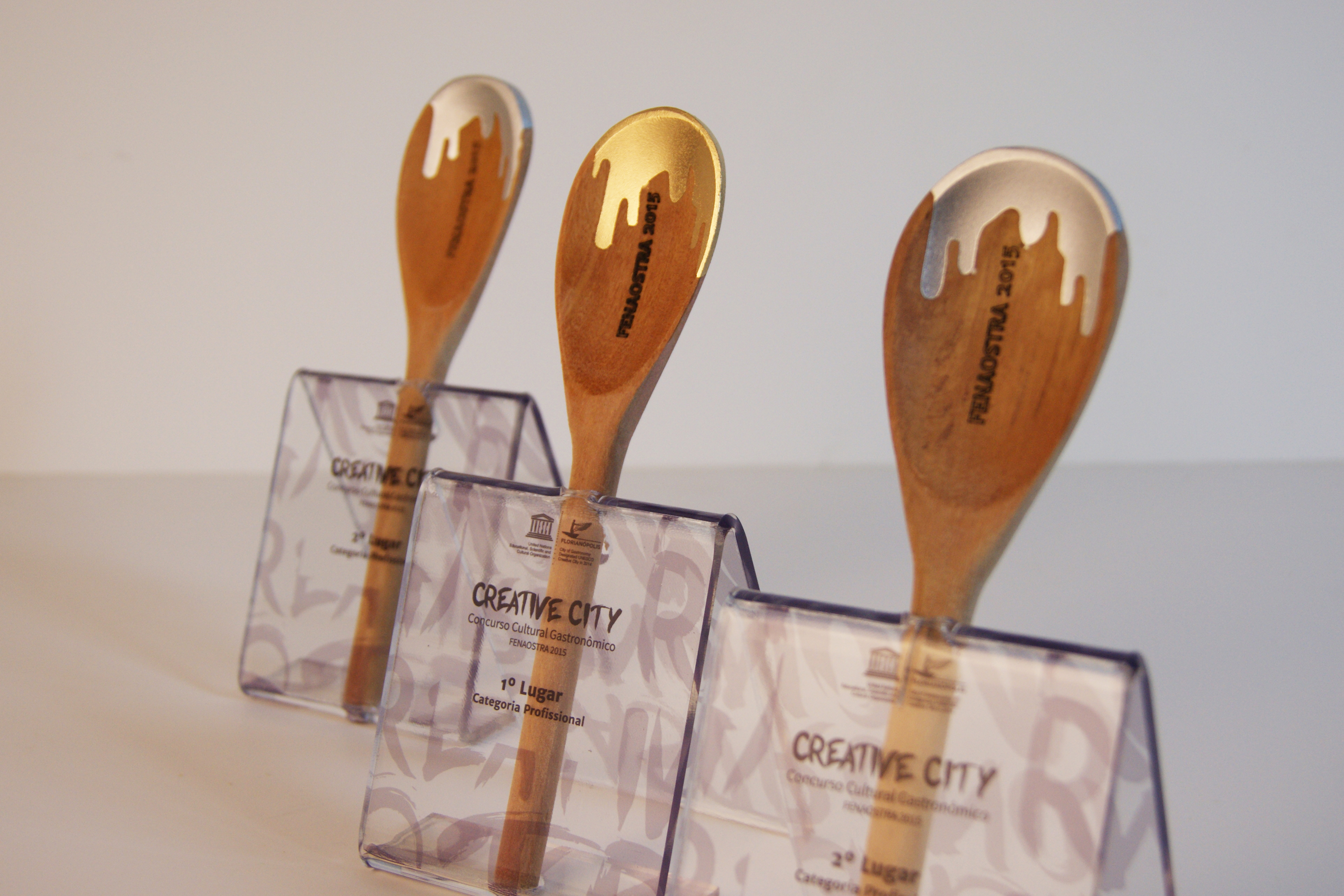 - Em parceria com o programa Unesco Creative Cities, que atribuiu a Florianópolis o título de Cidade Criativa da Gastronomia, o LabDesign projetou o troféu para a premiação do Concurso Cultural Gastronômico Fenaostra, realizado em Florianópolis com o objetivo de estimular novas formas de preparo da ostra. O elemento da colher de pau é mergulhado em três tintas metálicas que distinguem as colocações.