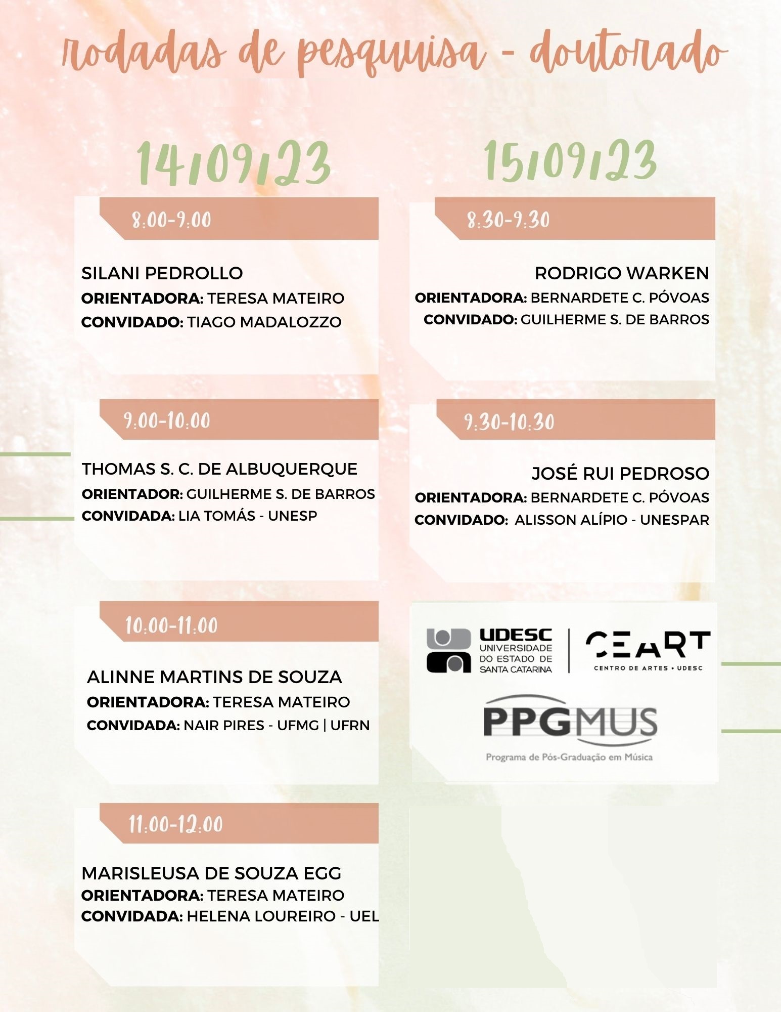 Horários de atendimento deverão ser agendados previamente na Secretaria do PPGMUS ou pelo e-mail ppgmus.udesc@gmail.com.