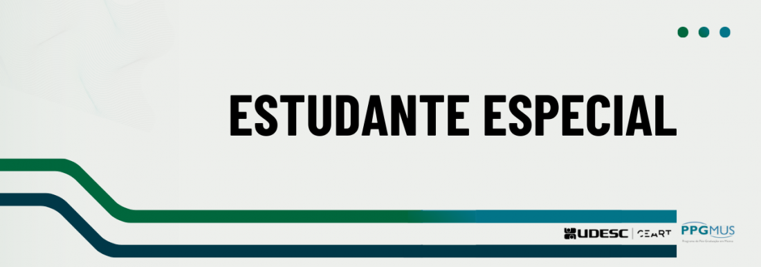 Aluno(a) Especial é aquele(a) sem vínculo com o Programa de Pós-Graduação em Música, que pode cursar disciplinas isoladamente. Também podem se inscrever como alunos(as) especiais estudantes de outros programas de pós-graduação reconhecidos pelo CAPES.