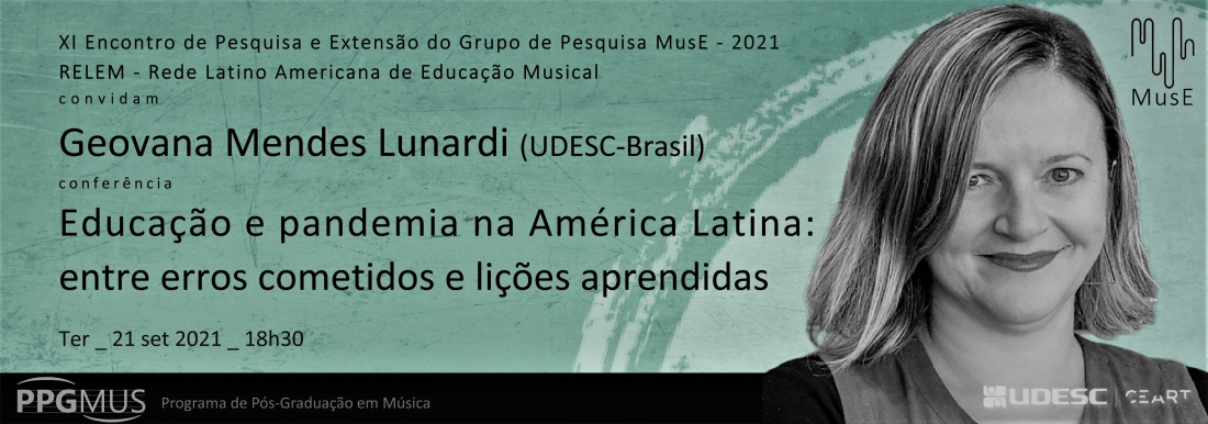 O Grupo de Pesquisa MusE – Música e Educação, em parceria com a RELEM – Rede Latino-Americana de Educação Musical, convidam para a conferência de abertura do XI Encontro de Pesquisa e Extensão do MusE
