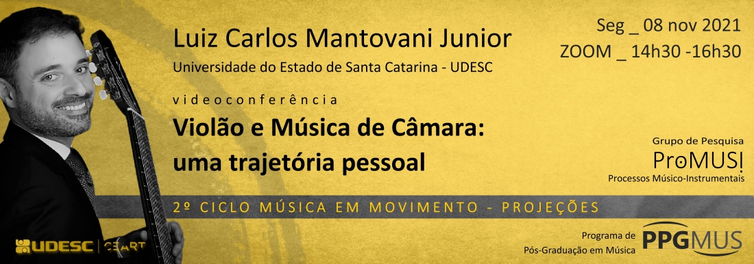 Luiz Carlos Mantovani Junior é violonista, professor da Universidade do Estado de Santa Catarina - UDESC em Florianópolis, desde 2003. Possui PhD em Musicologia pelo Royal College of Music em Londres, Mestrado e Artist Diploma pelo New England Conservatory of Music em Boston, e bacharelado pela Universidade Federal do Estado do Rio de Janeiro - UNIRIO. Instrumentista com atuação internacional e especialista em música de câmara, integrou por 11 anos o Quarteto Brasileiro de Violões – com quem recebeu o Grammy Latino em 2011 – e atualmente integra o NOVA Guitar Duo.