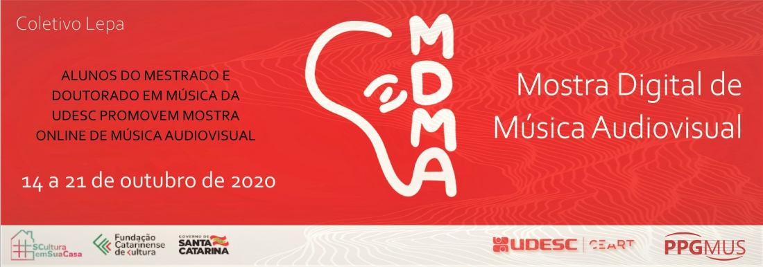Os alunos do Programa de Pós-Graduação em Música da UDESC, através do Coletivo LEPA -Laboratório de Etnomusicologia, Performance e Audiovisual promovem a Mostra Digital de Música Audiovisual - MDMA de 14 a 21 de outubro de 2020 às 19h no Canal do Youtube do evento.