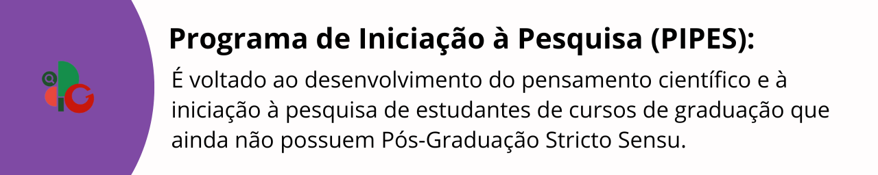 O Edital PIPES visa selecionar planos de trabalho vinculados aos projetos de pesquisa, previamente aprovados, a serem desenvolvidos por estudantes de IP no período de vigência das cotas, nas diversas áreas do conhecimento.