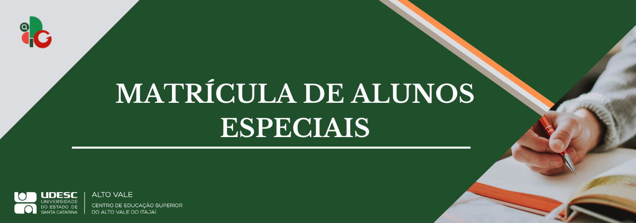 Alunos(as) especiais são aqueles(as) matriculados(as) exclusivamente em disciplinas isoladas, sem qualquer vínculo formal com os Programas de Pós-Graduação da Universidade. A participação como aluno(a) especial não implica ingresso como aluno(a) regular no curso de mestrado
