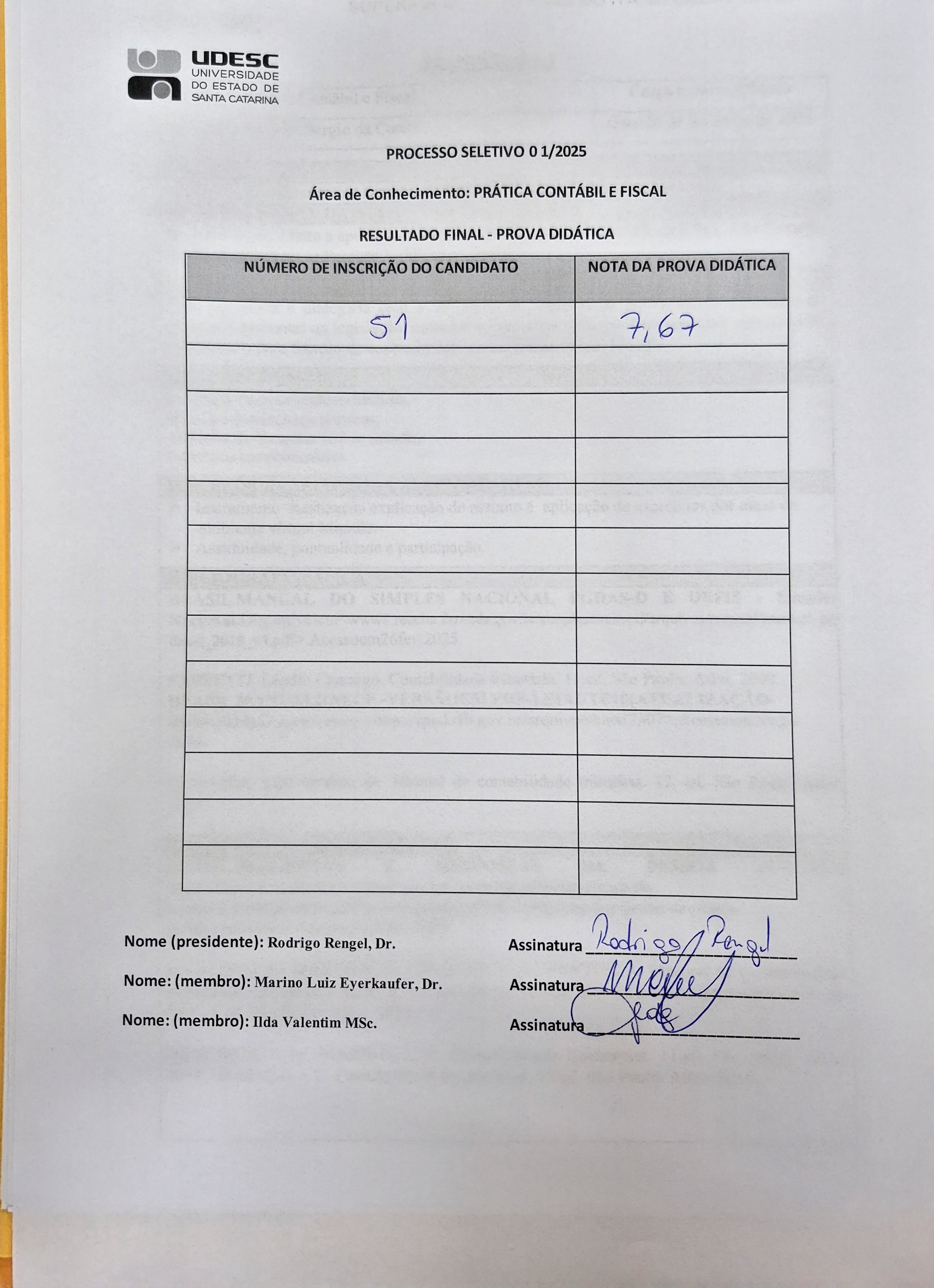 Prova Didática - Resultado Final (não houve candidato aprovado na prova escrita)
