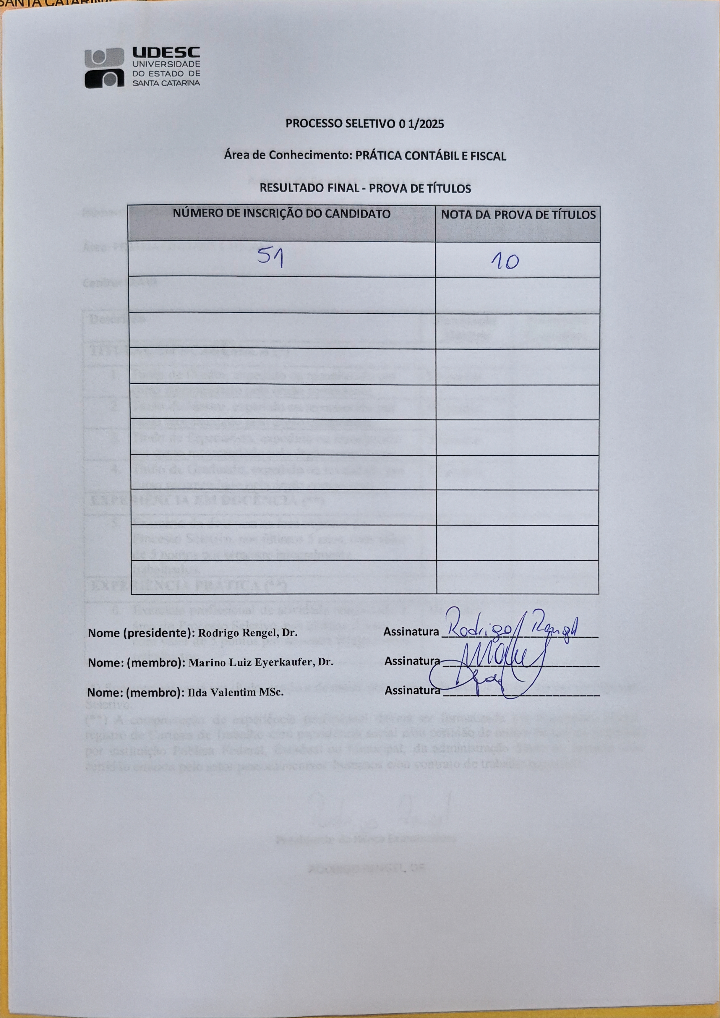 Prova de Títulos - Resultado Preliminar (não houve candidato aprovado na prova escrita)