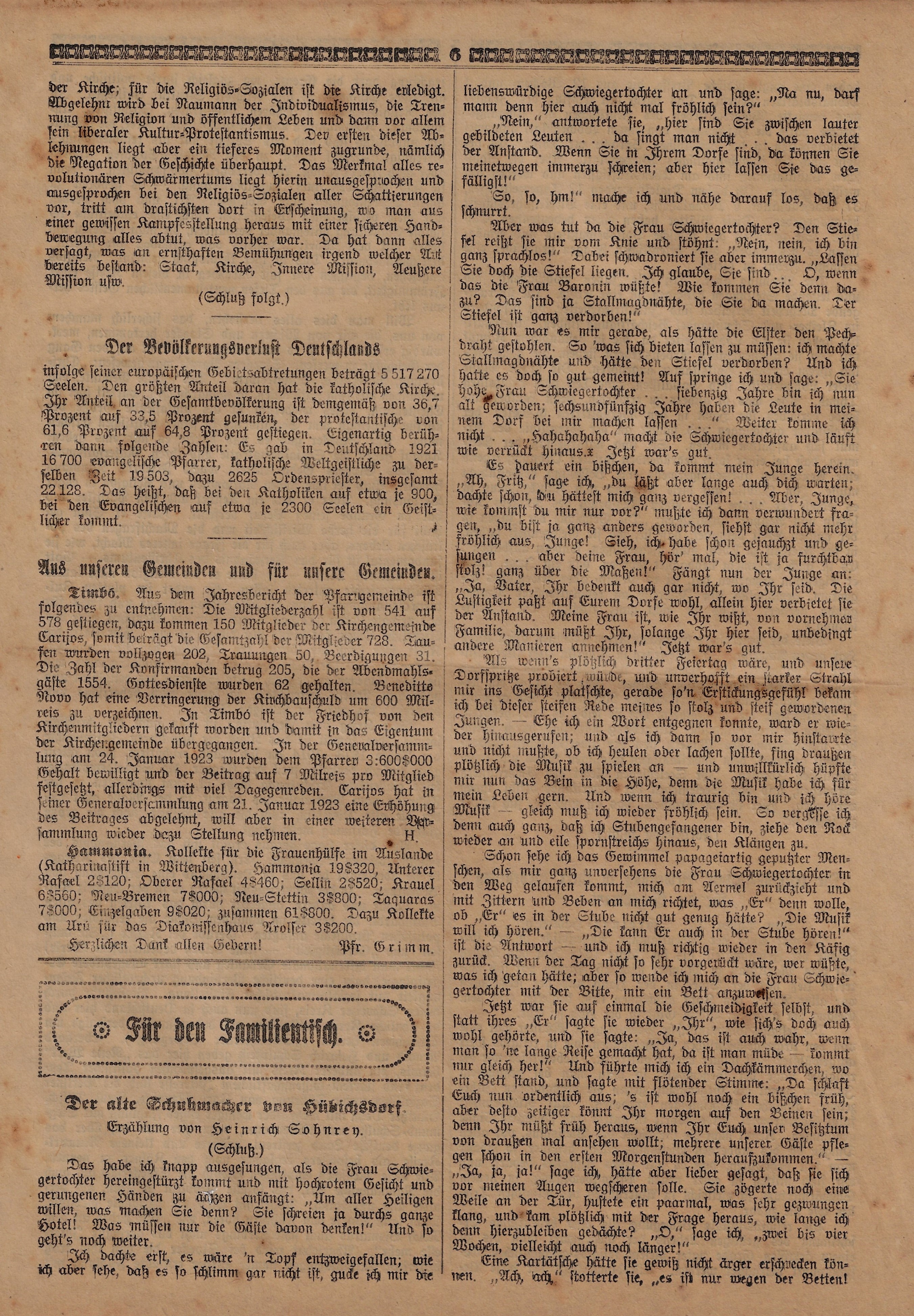 Criado com esse propósito, o jornal levava aos lares reflexões cristãs, orientações espirituais e notícias das comunidades locais e da igreja na antiga pátria, além de artigos culturais, científicos e etnográficos. Sua tiragem inicial foi de cerca de 1.200 exemplares, chegando a atingir 3.700 cópias.