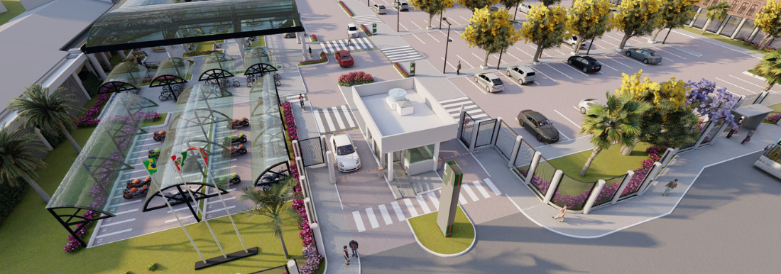 Implantação de estacionamento em paver: A criação de um estacionamento em paver oferece uma superfície resistente e de fácil manutenção, proporcionando um espaço adequado para o estacionamento de bicicletas, motos, veículos de passeio e ônibus. A delimitação de vagas contribui para a organização e a segurança do estacionamento.