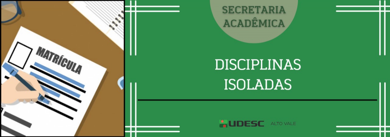 A matrícula em disciplinas isoladas é a oportunidade de cursar até duas disciplinas em um curso de graduação da UDESC. Alunos de outras instituições podem buscar disciplinas equivalentes e validá-las em seu curso de origem. Além disso, pessoas interessadas em um curso de graduação têm a oportunidade de frequentar até duas disciplinas e, posteriormente, caso venham a ingressar através de Vestibular ou Processo Seletivo, validar as disciplinas aprovadas!