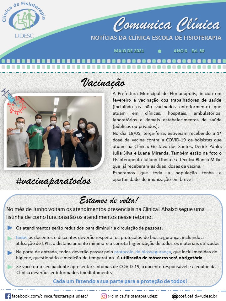 O Comunica Clínica foi criado com o objetivo de estreitar a comunicação entre todos que trabalham na clínica, pois acreditamos que a humanização do atendimento inicia com uma equipe envolvida. Participe e confira abaixo as edições: