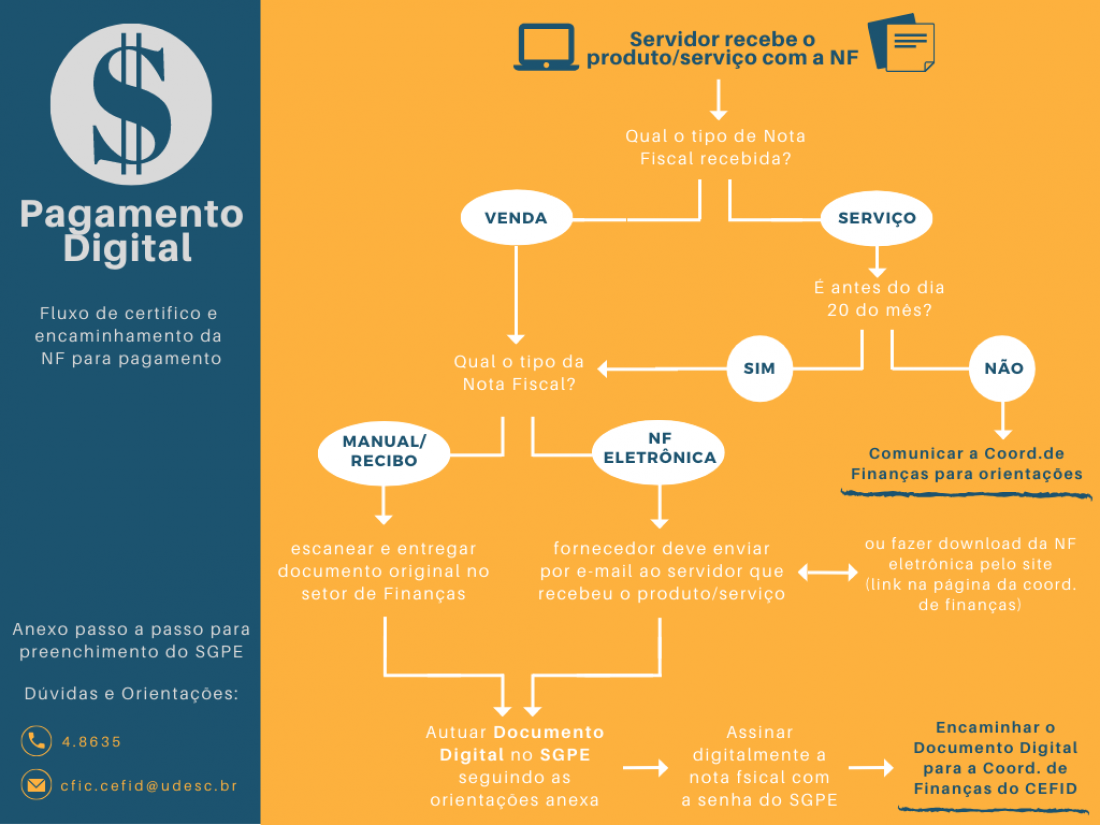 A data de encaminhamento para pagamento no mês será sempre dia 20. Atentar principalmente para notas de serviço.