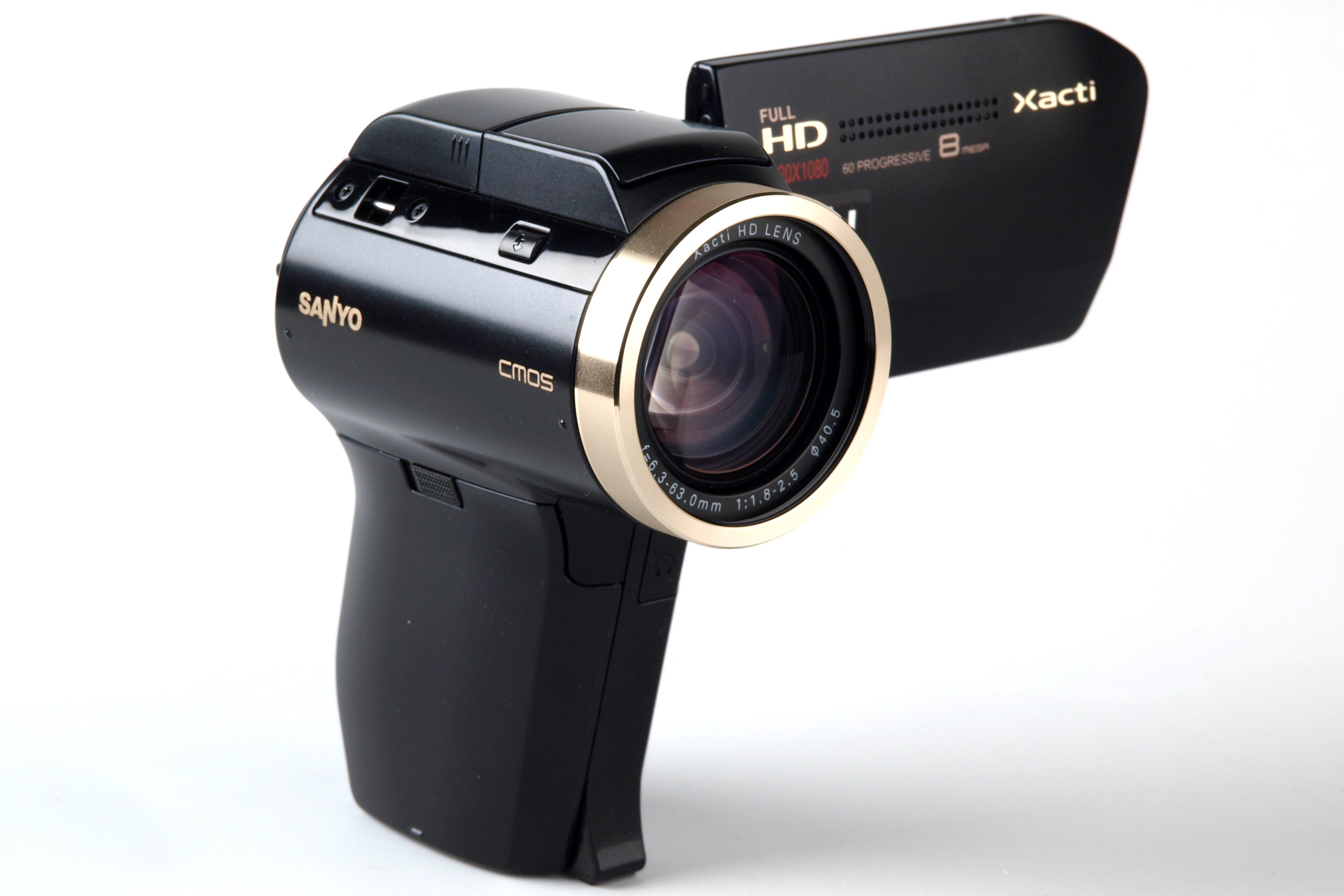 Câmera de vídeo Xacti VPC-HD2000 – Sanyo. Possui sensor CMOS 1/2.5", zoom ótico 10x, grava em MPEG-4 AVC/H.264, fotografa em 8MP, possui LCD 2.7", entrada para microfone externo e saída para fones de ouvido, filtro 40.5mm, modo 1080/60p com 24Mbps (alem de 1080/60i 16Mbps, 1080/30p 12Mbps, 720/30p 9Mbps).