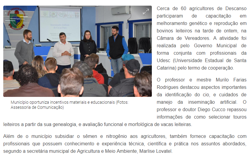 Programa Melhoramento Genético capacita agricultores sobre reprodução e bovinos leiteiros.