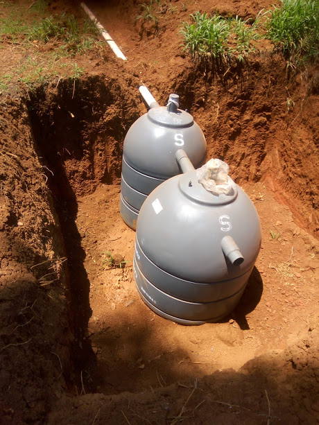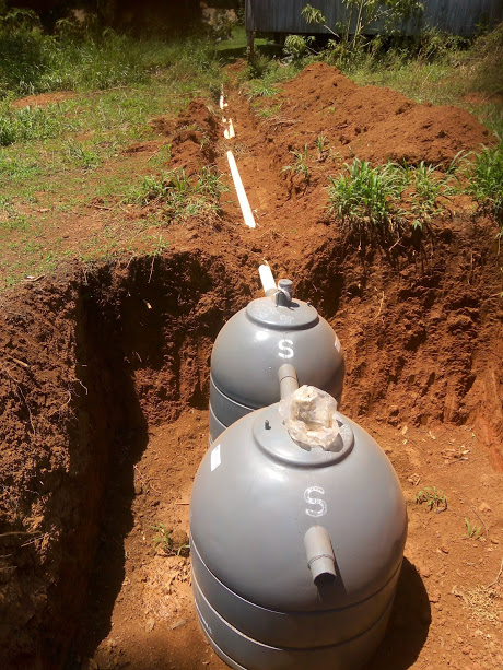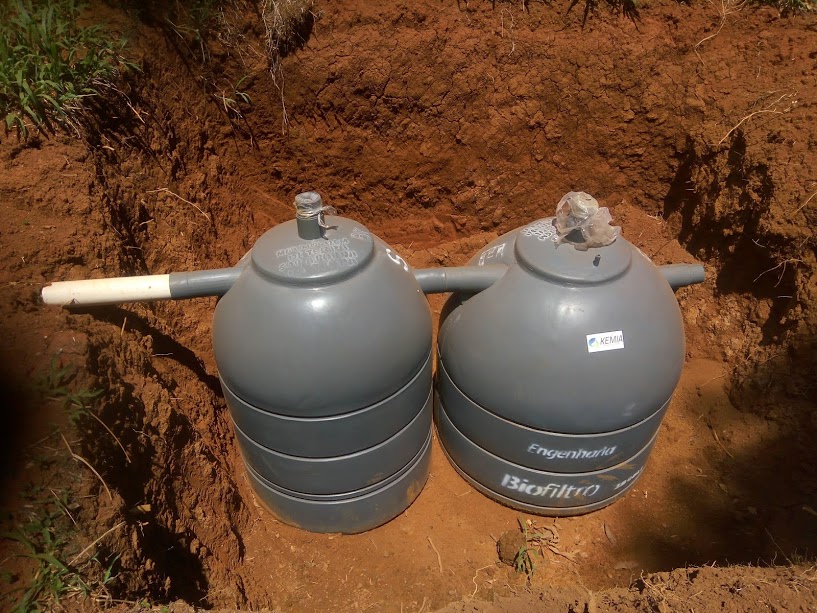 Sistema de tratamentos de dejetos dos banheiros implantados no mês de janeiro último (guarita e casa de apoio) composto por um conjunto de Biorreator e Biofiltro com redução da carga poluente de 95% segundo o fabricante, sendo em seguida encaminhado para a vala de infiltração que será preenchida com pedras.