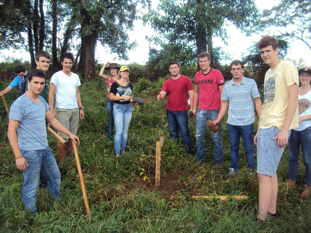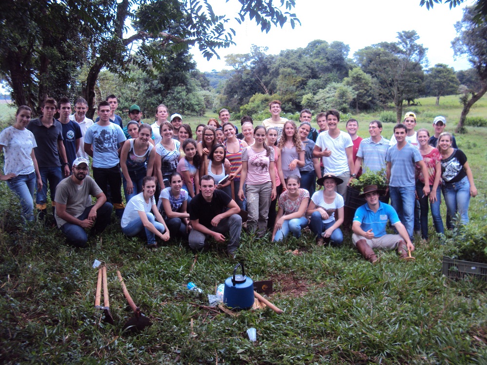 Março de 2014 - Trote solidário aos calouros 2014/1 do Curso de Zootecnia com plantio de árvores nativas na FECEO sob orientação dos professores Diovani Paiano, Denise Araújo e Paulo Ricardo Ficagna.