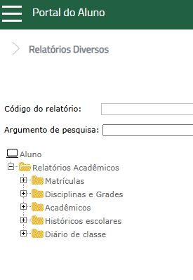 Após acessar o SIGA, na página inicial, dentre as opções disponíveis selecione "Relatórios Diversos". Basta clicar na opção "+" para expandir o menu e visualizar todas as opções.