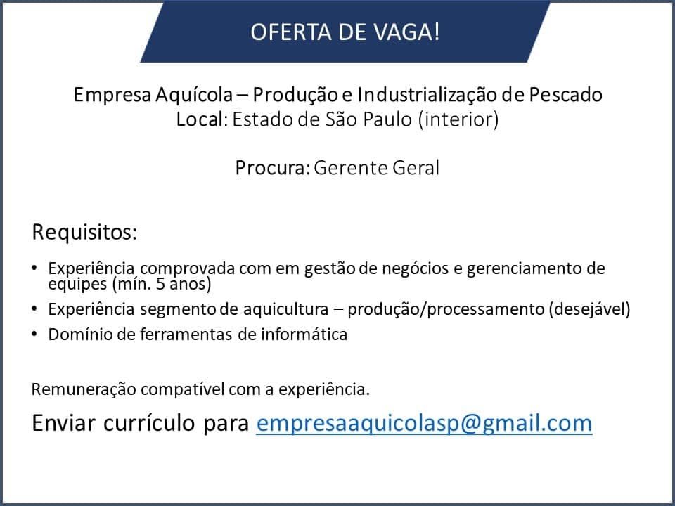 Ficam disponíveis para consulta todas as oportunidades de estágio, bolsa, tabalho e eventos em geral, encaminhadas ao Departamento, para a área de Engenharia de Pesca.