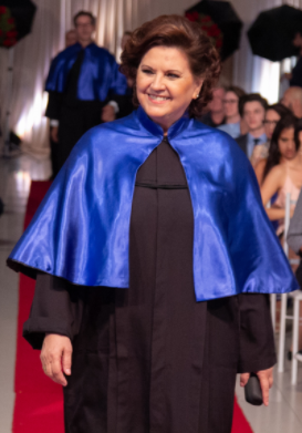 Também é mestre em Serviço Social pela PUC do Rio Grande do Sul e em Administração pela UFSC, além de doutora em Engenharia de Produção pela instituição federal.